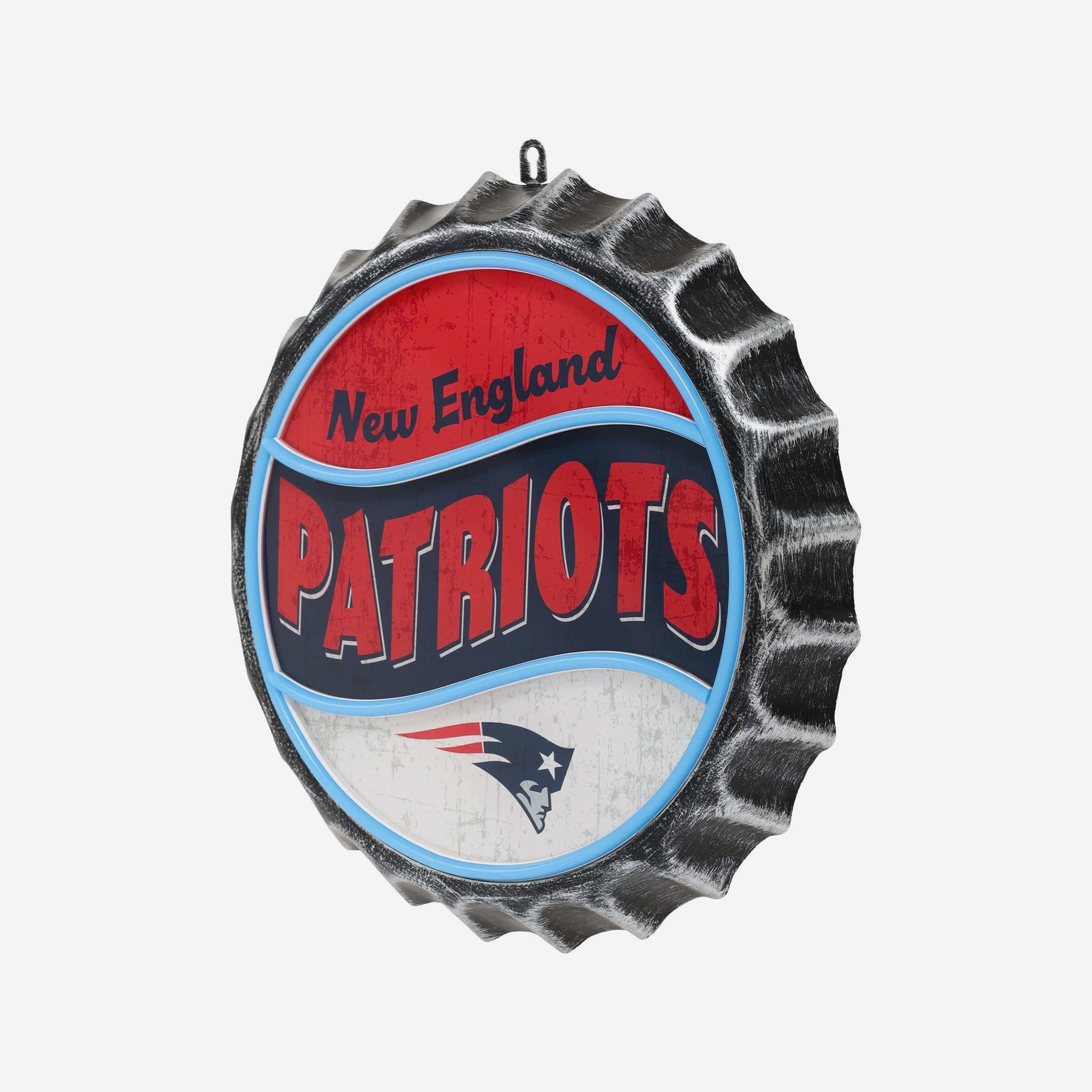 Light up your fancave in team-ready style! Put your pride on full display with this New England Patriots Neon Backlit Bottle Cap Wall Sign, featuring bold graphics in a classic bottle cap design.