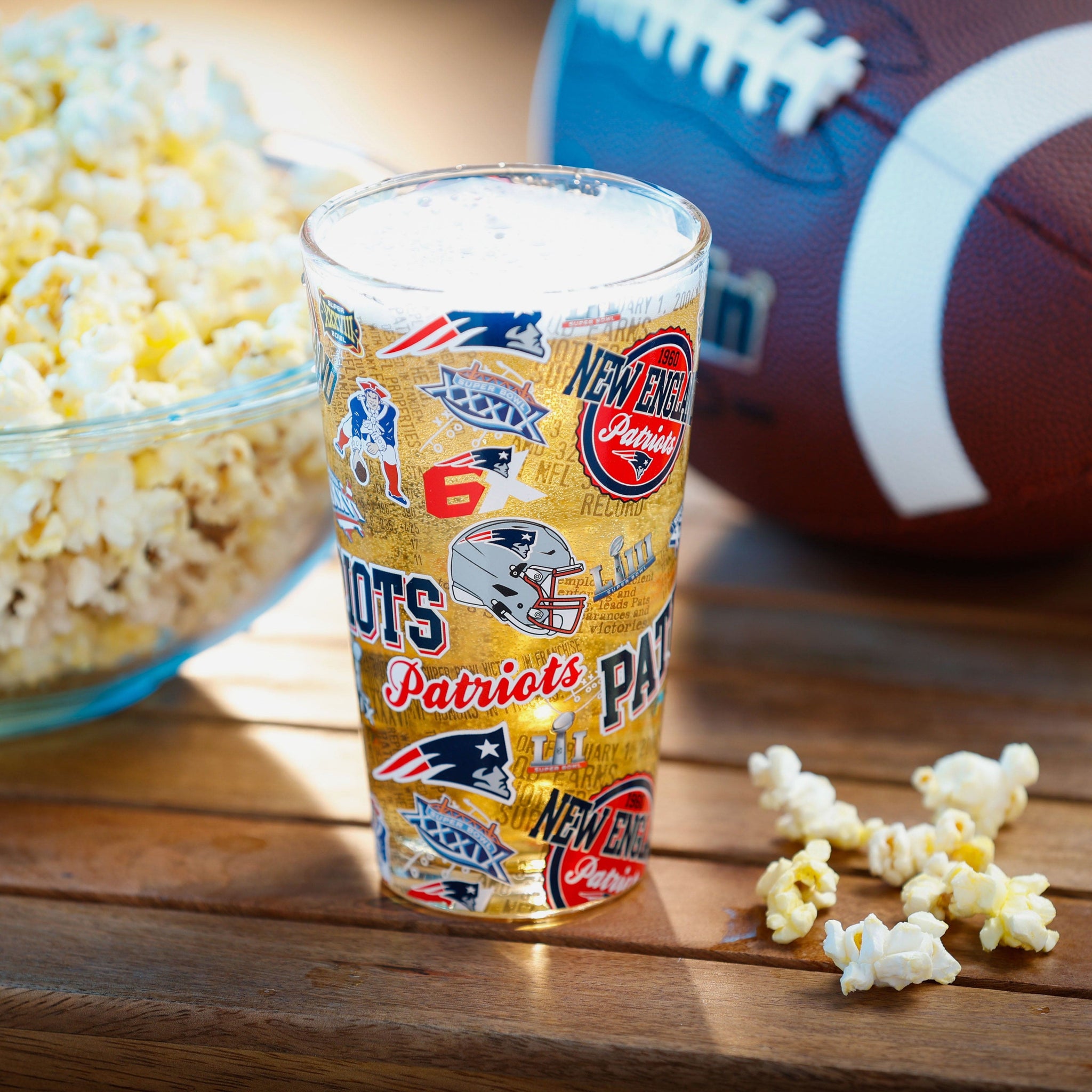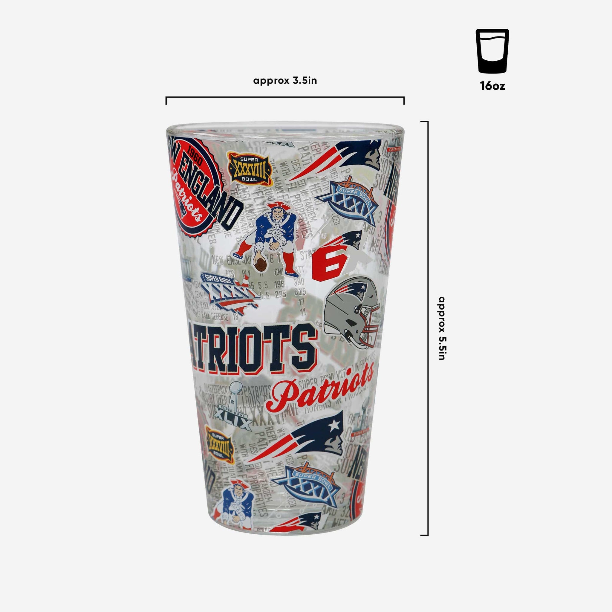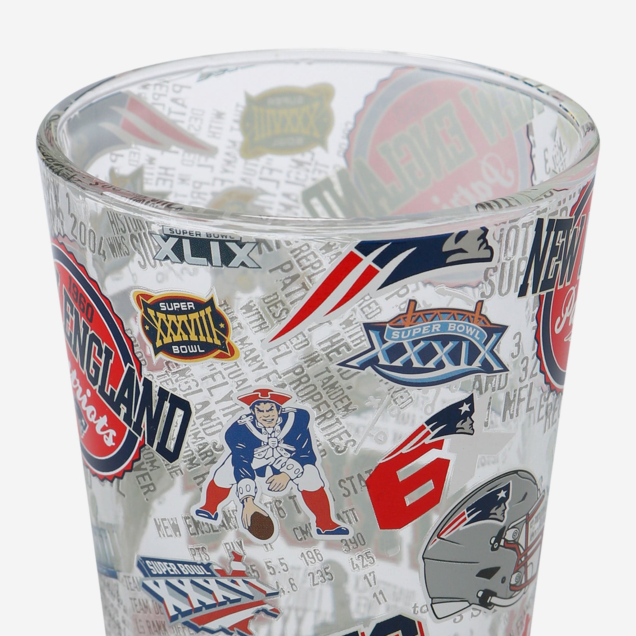 A blast from the past served in one fine pint. Introducing the New England Patriots Historic Print Pint Glass. Let's make history.