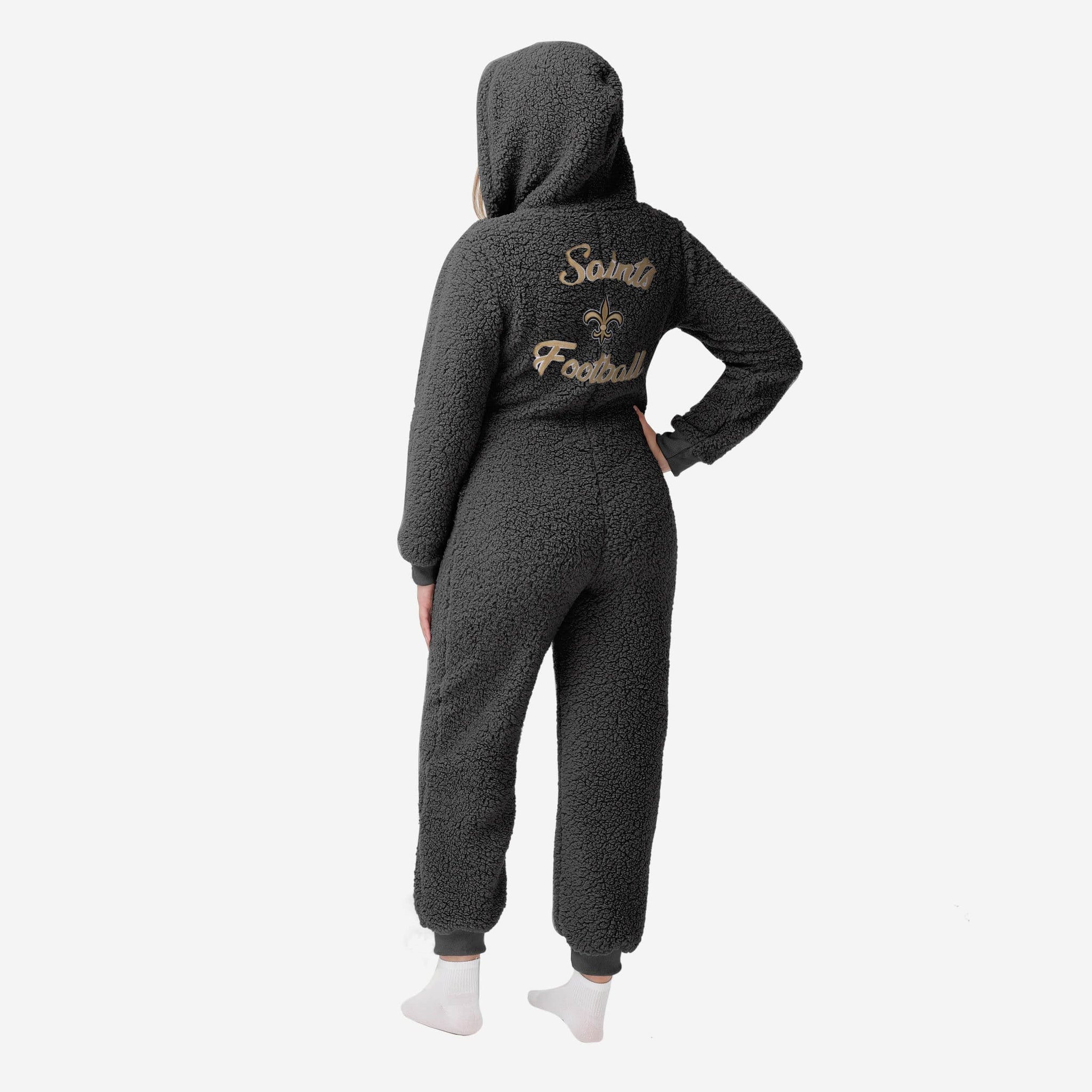 Get some matching family pajamas and dress to impress this holiday season! You won't want to miss these onesie team pajamas! These women's PJ's are comfortable and show off your team spirit in the form of some sweet one piece jammies. Introducing the New Orleans Saints Women's Sherpa One Piece Pajamas! Don't forget to take your holiday photo with the whole family wearing matching Christmas pajamas!