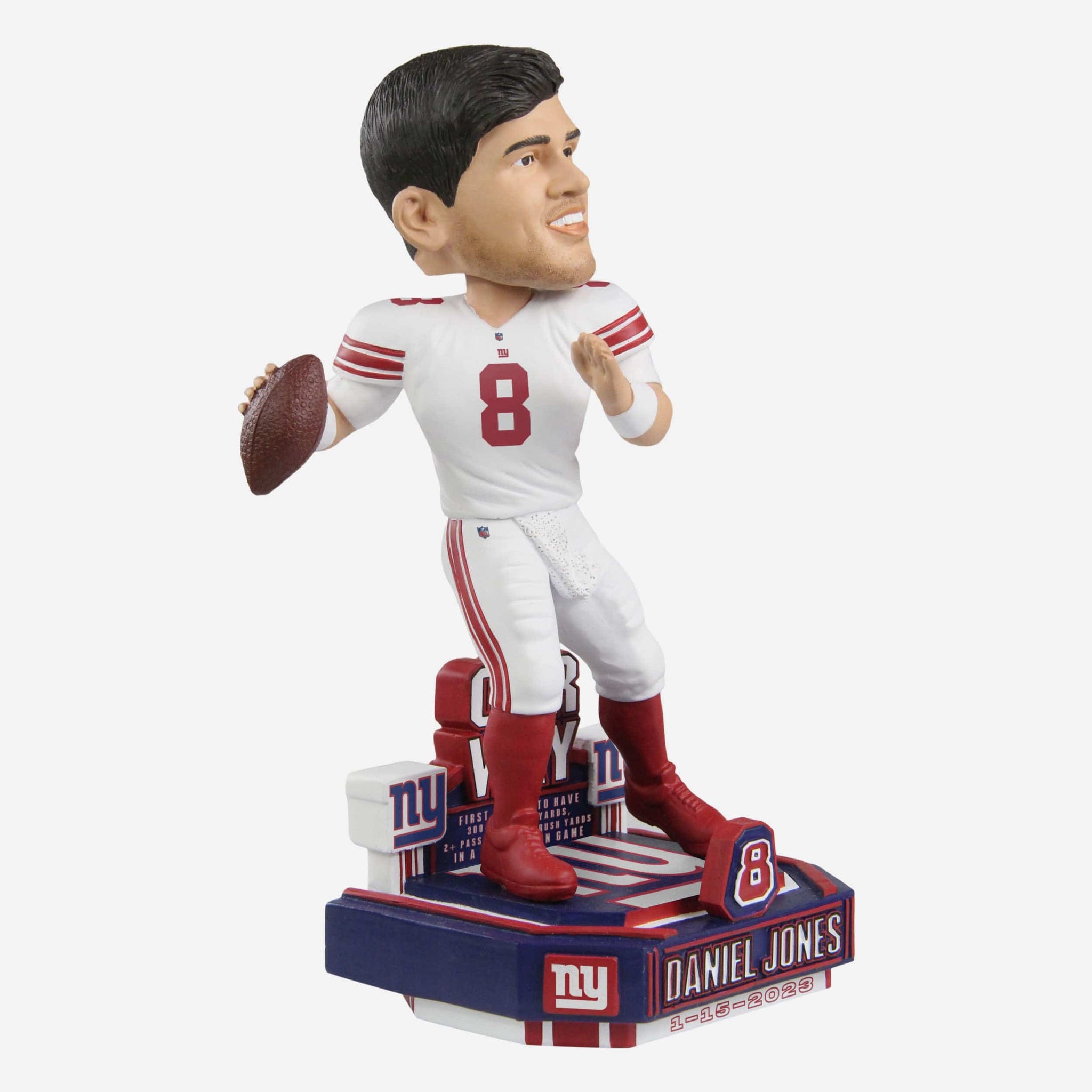 • Text display on backdrop showcasing Jones’ historic stats from the Giants’ Wild Card Round victory so you'll never forget his epic performance