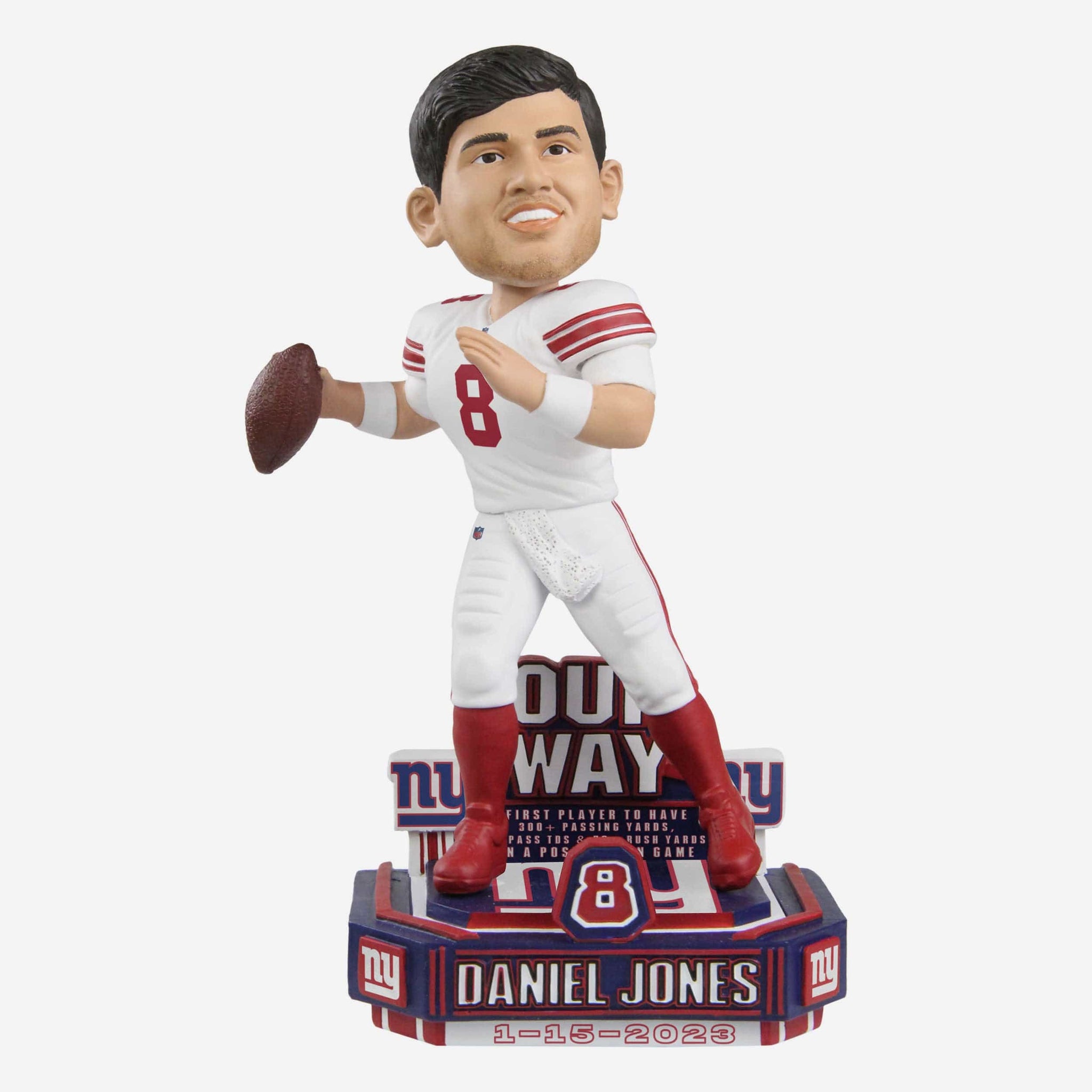 In his playoff debut, Danny Dimes was on the money! Take it to the bank and celebrate his big win for Big Blue with the Daniel Jones New York Giants Our Way Bobblehead.