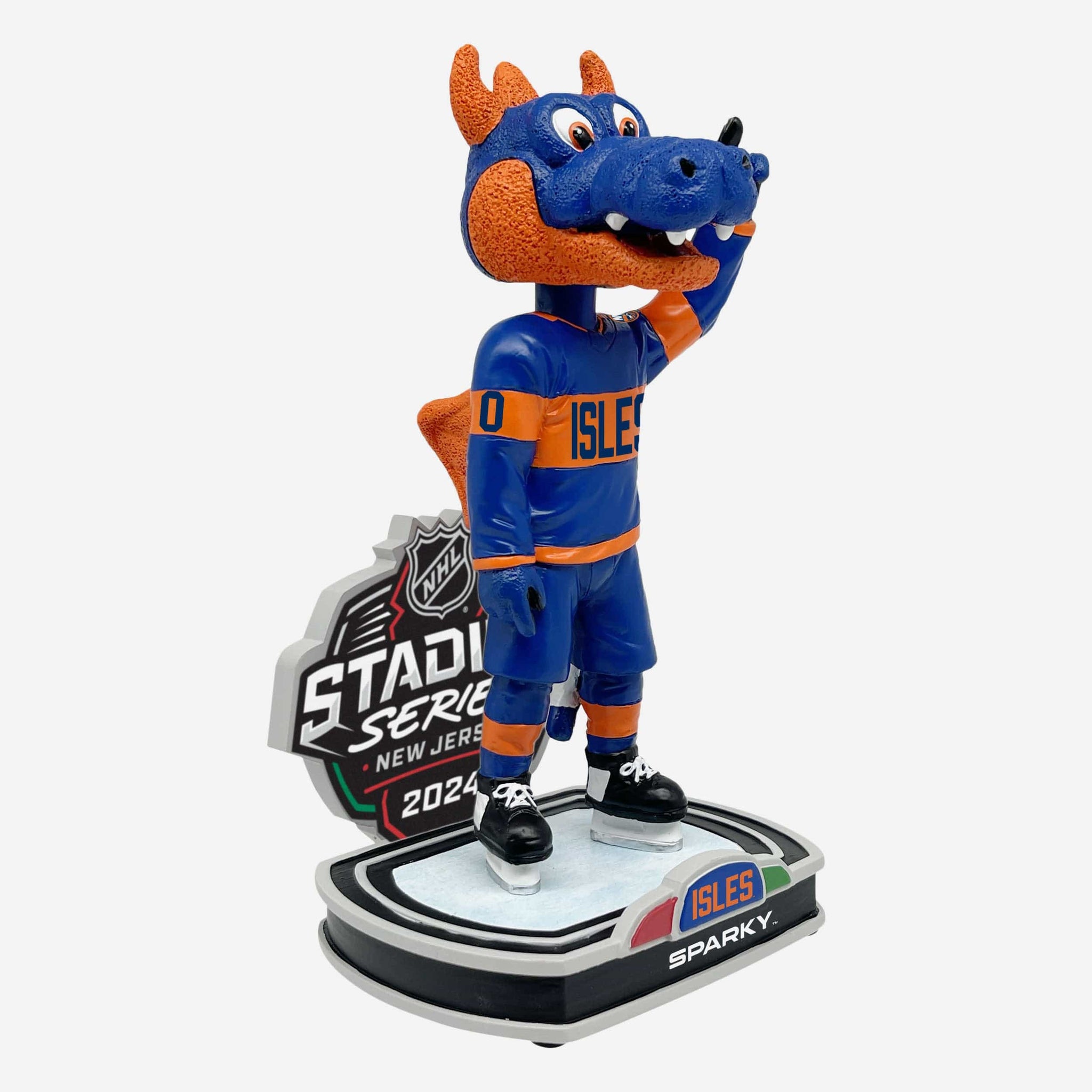 It wouldn't be a Stadium Series without this dragon! Your fan spirit will be as big as the great outdoors with the Sparky the Dragon New York Islanders 2024 Stadium Series Mascot Bobblehead.