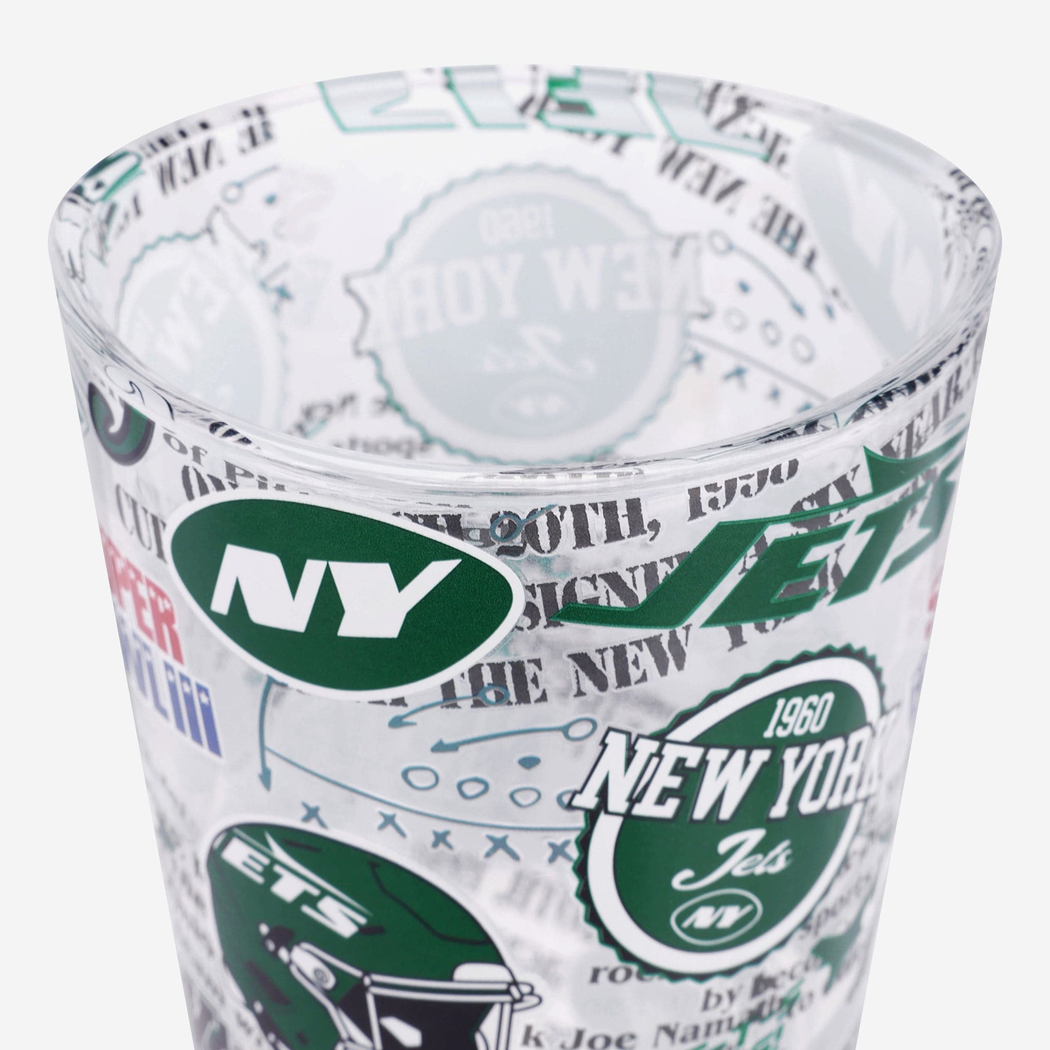 A blast from the past served in one fine pint. Introducing the New York Jets Historic Print Pint Glass. Let's make history.