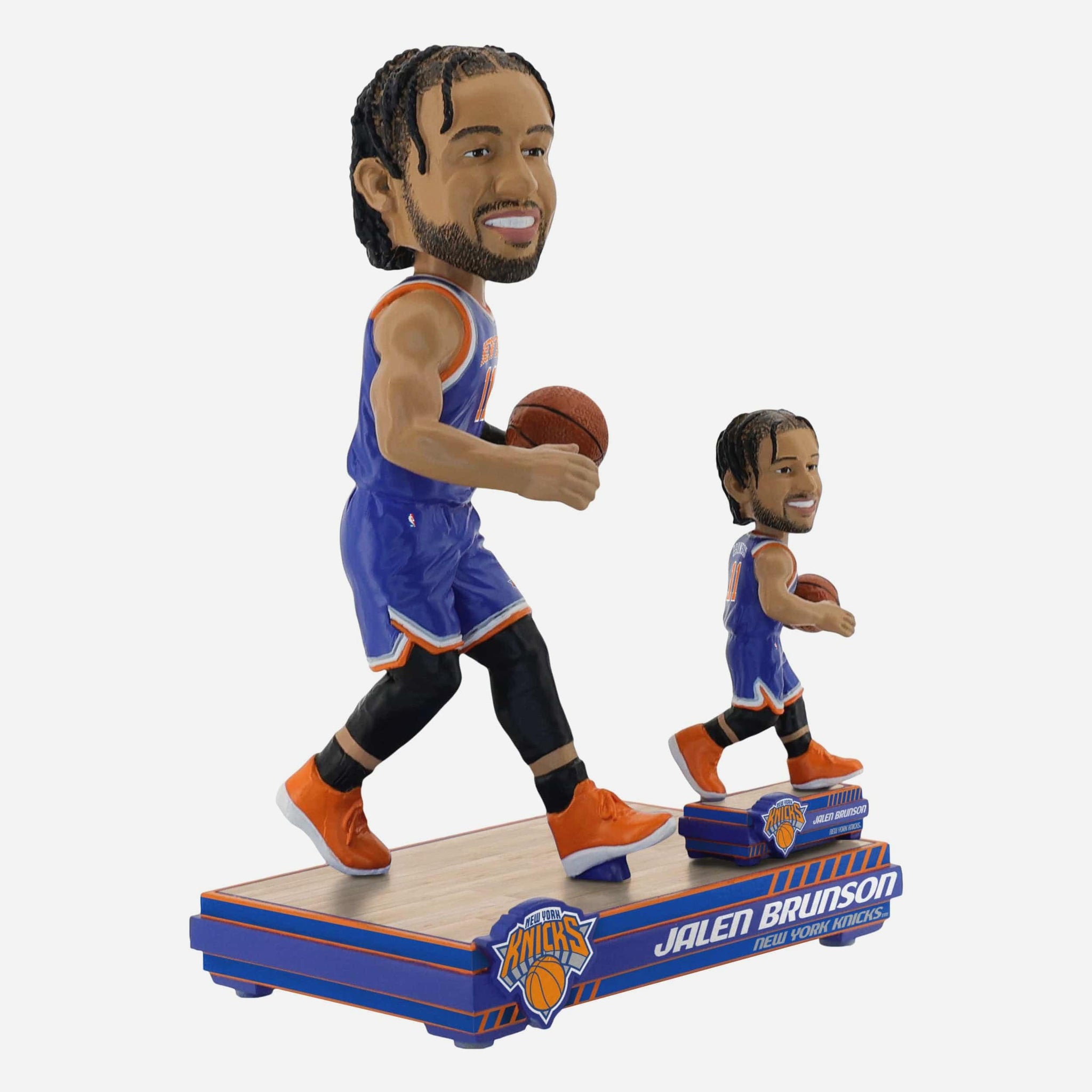 Two bobbles. One magnetic connection! Bring double the court-side energy to your collection with the Jalen Brunson New York Knicks Magnetized Bobble Dubblz Bobblehead. Featuring your favorite player alongside a mini-me version, this unique design lets the two snap together with a magnetic connection for a dynamic, display-ready look.