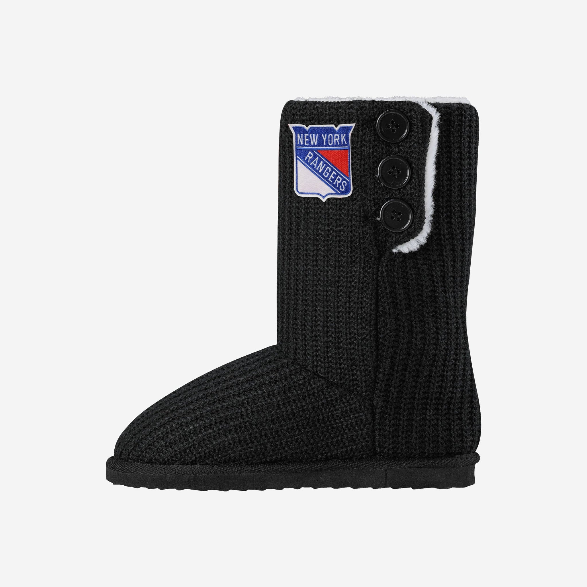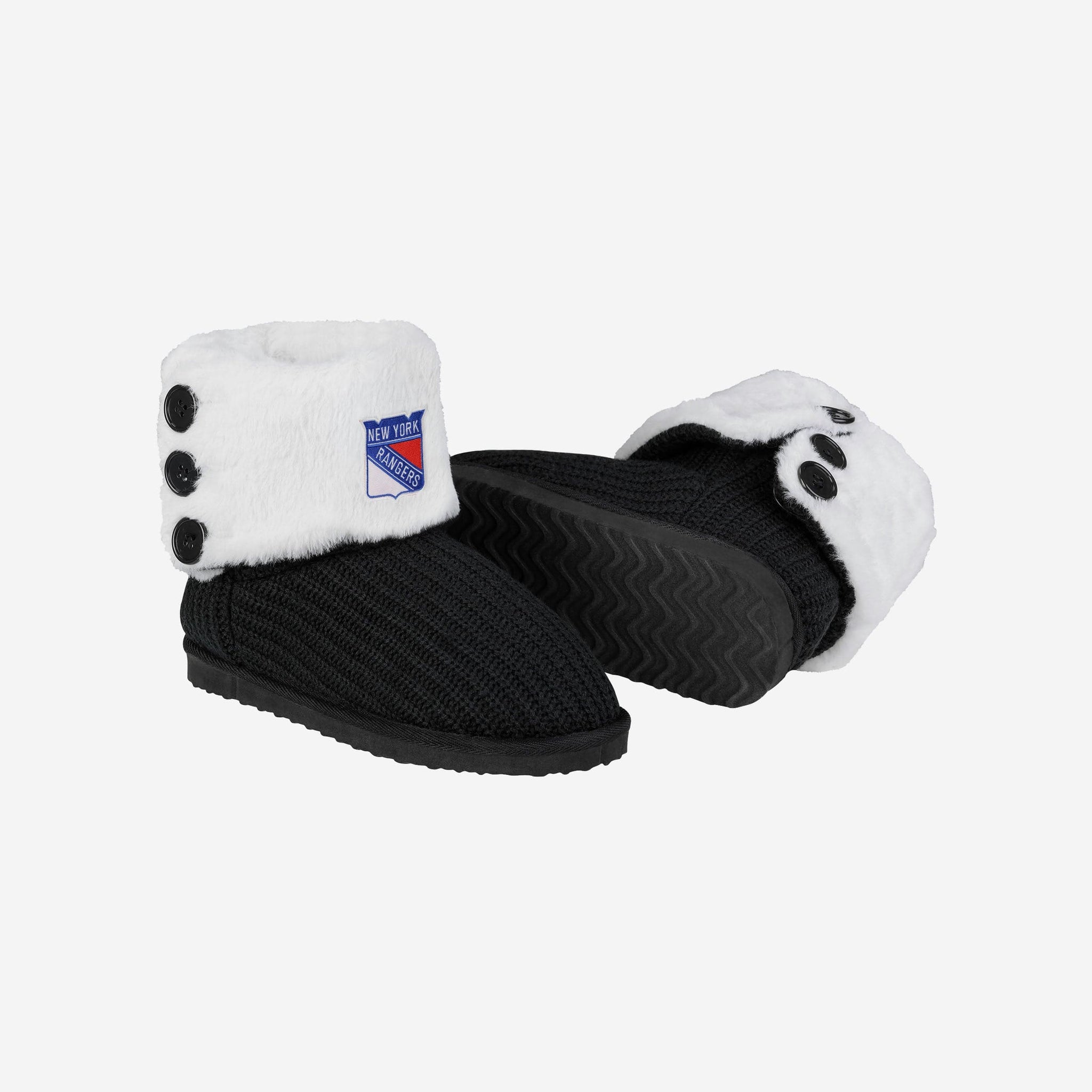 These New York Rangers Knit High End Button Boot Slippers are perfect for rocking your team spirit from head to toe, or keeping yourself warm and comfortable while you sneak downstairs for that secret midnight snack. No judgment here.