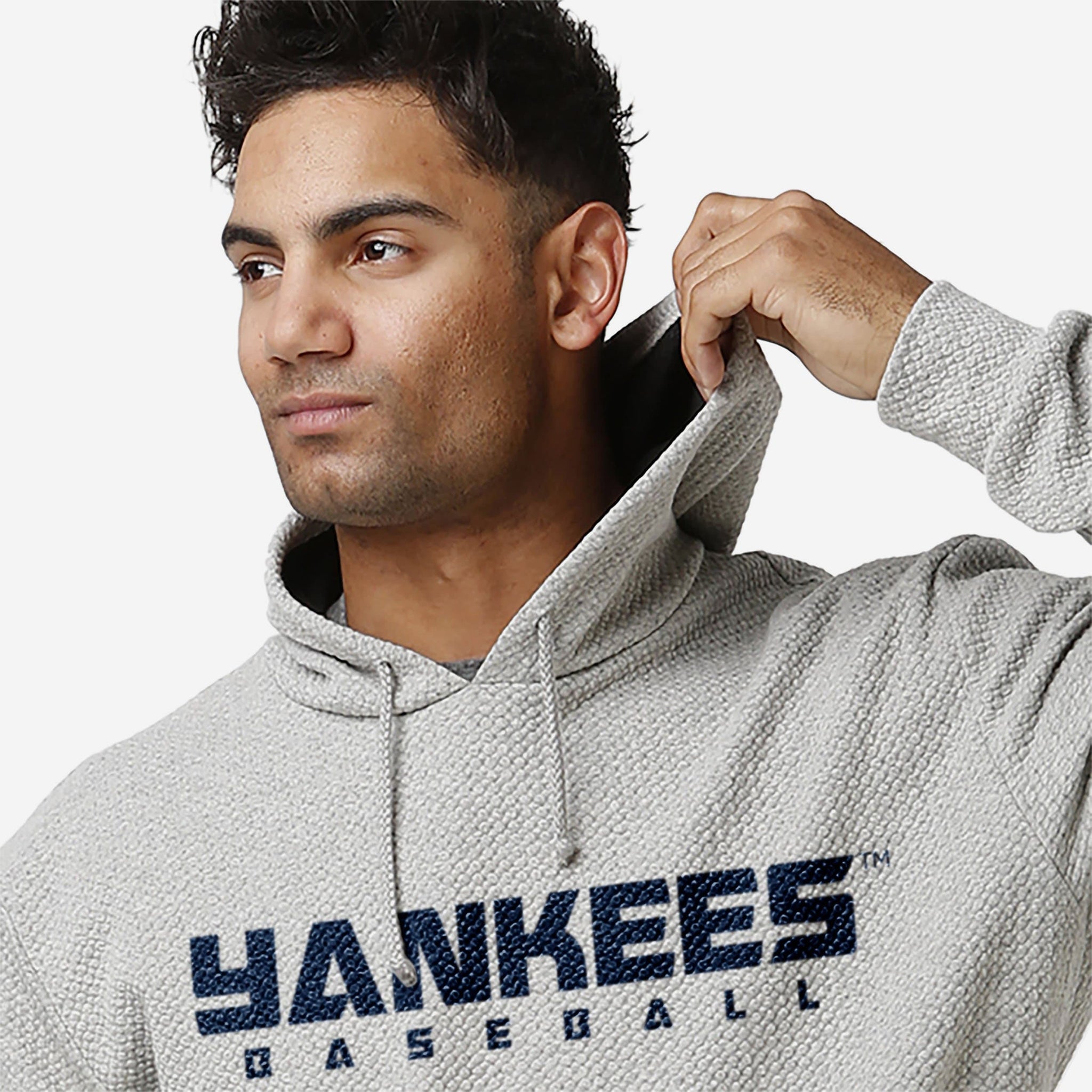 Say hello to the New York Yankees Gray Woven Hoodie!