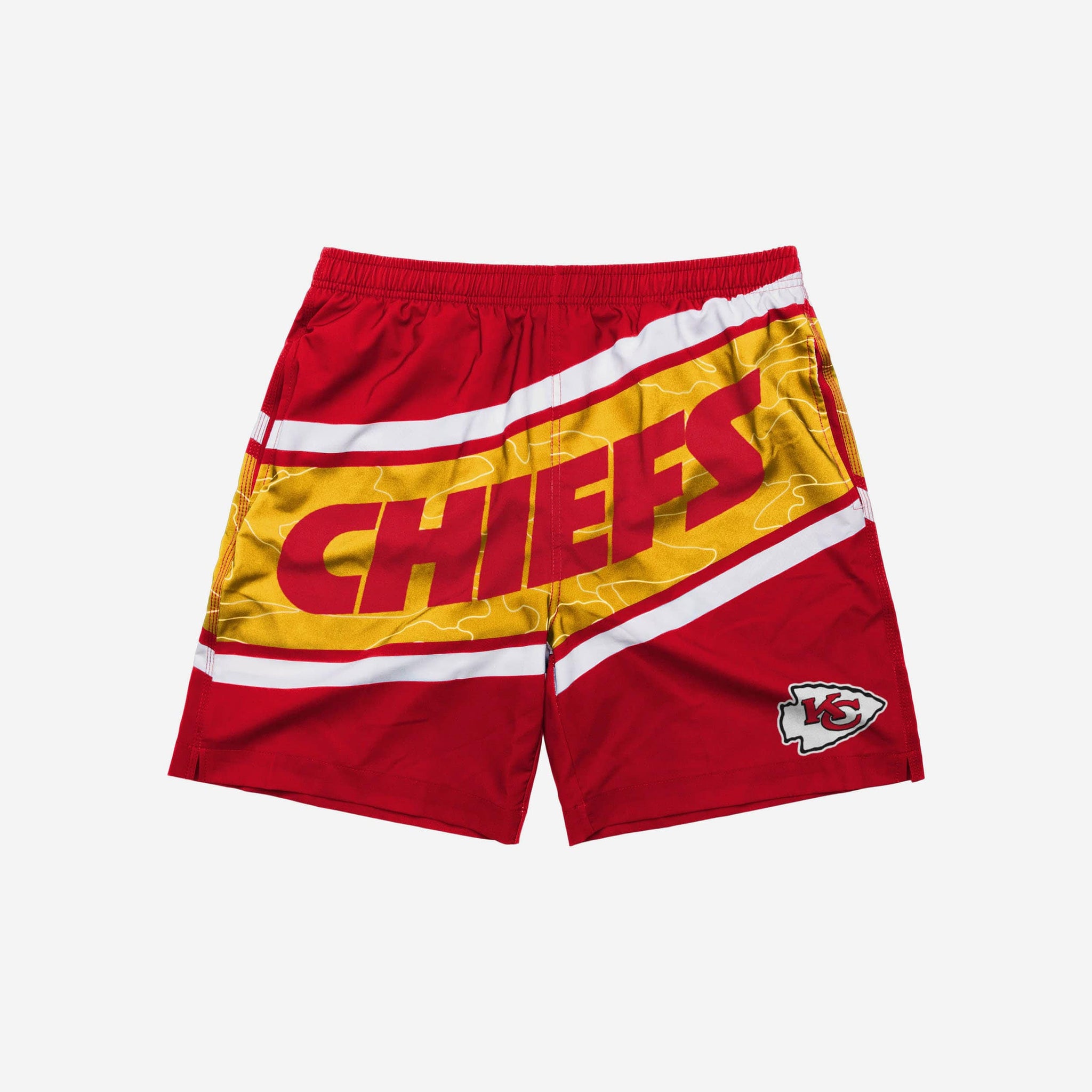 Enjoying a day off at the pool or beach? Don't forget your sunglasses, towel, sunscreen, and, of course, your fandom. These Kansas City Chiefs Traditional Big Wordmark Swimming Trunks can help with that last one. Fan on while you get your tan on.