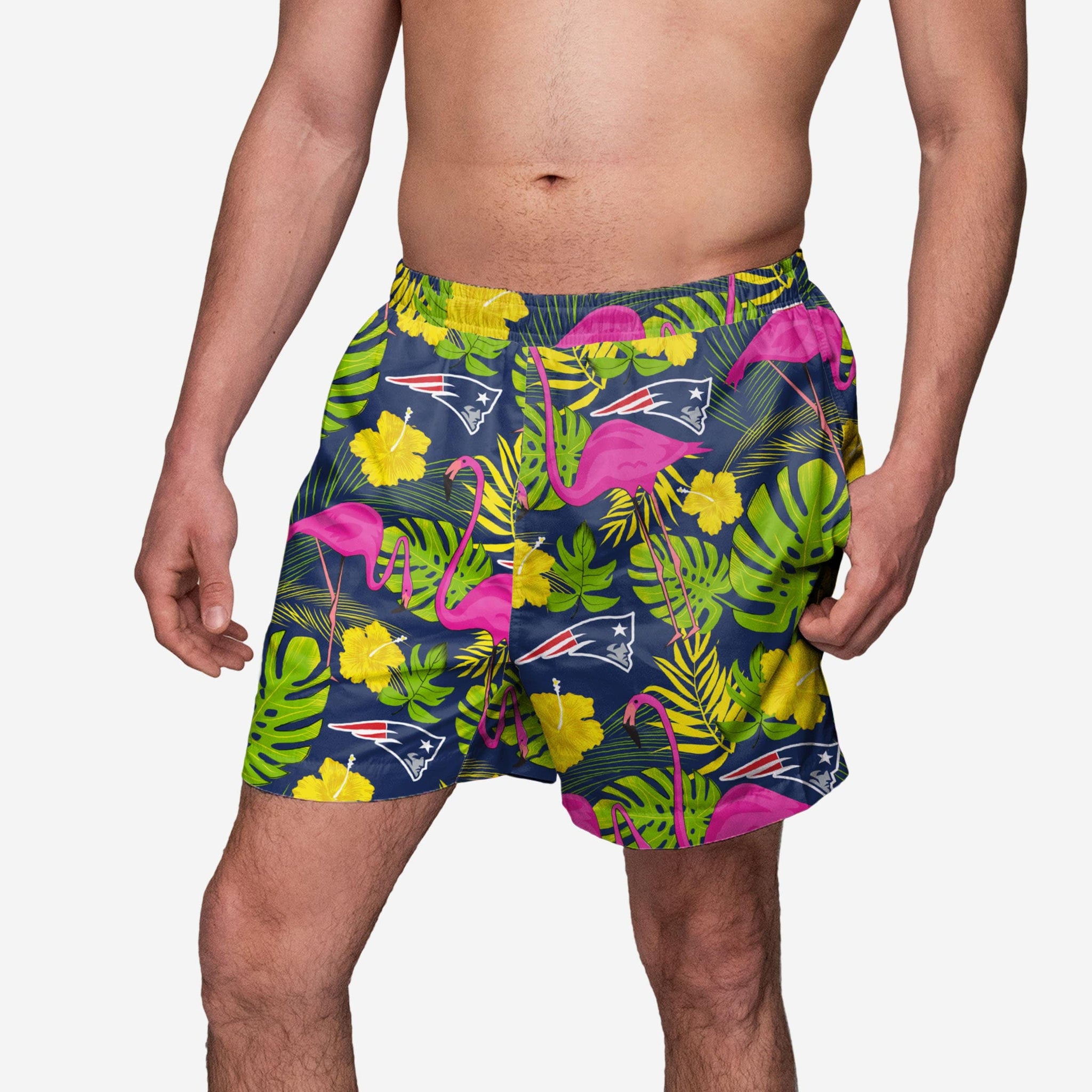 Meet the highlight of your summer attire. Dive into the deep end of stylish team spirit in these New England Patriots Highlights Swimming Trunks!