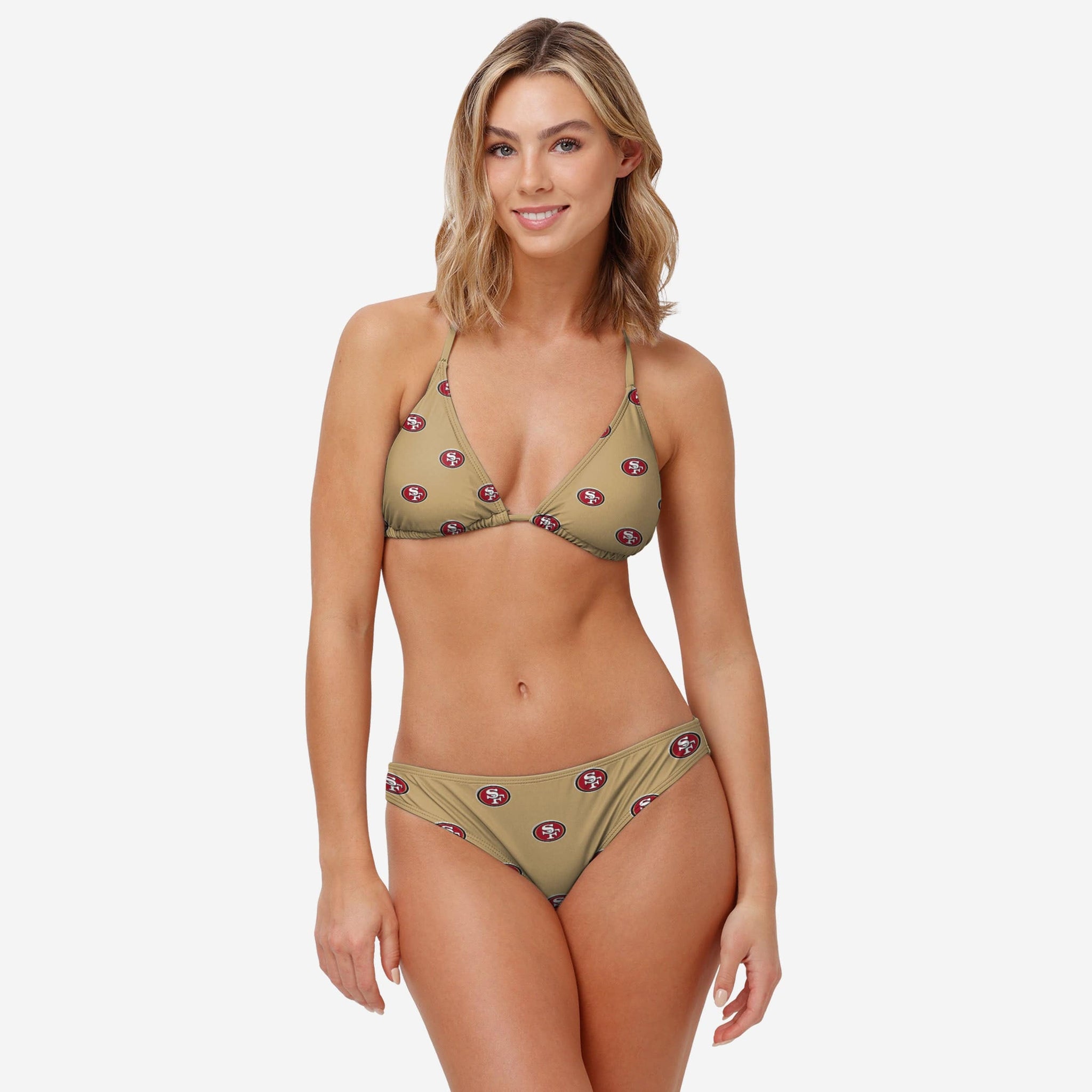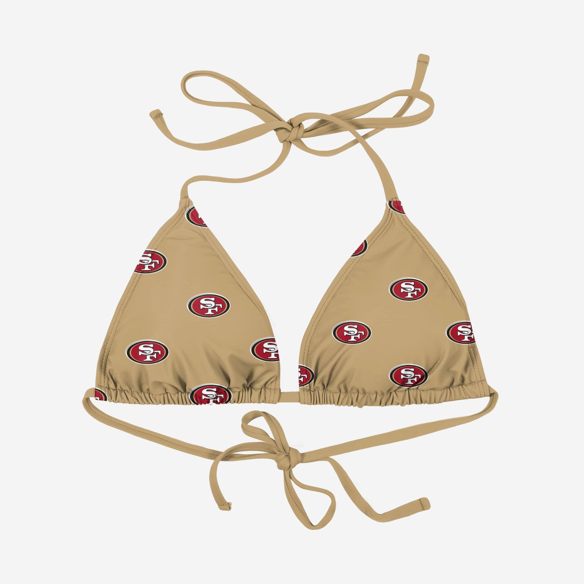 Take your team pride poolside and lounge like a legend in the San Francisco 49ers Women's Mini Print Bikini Top!