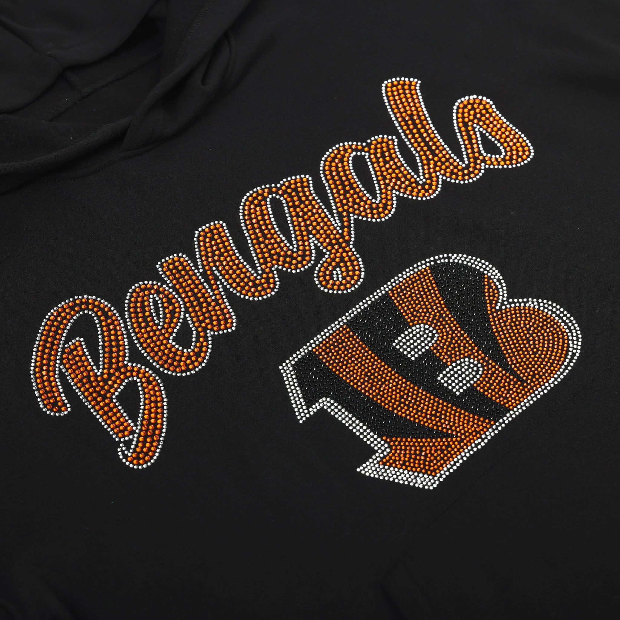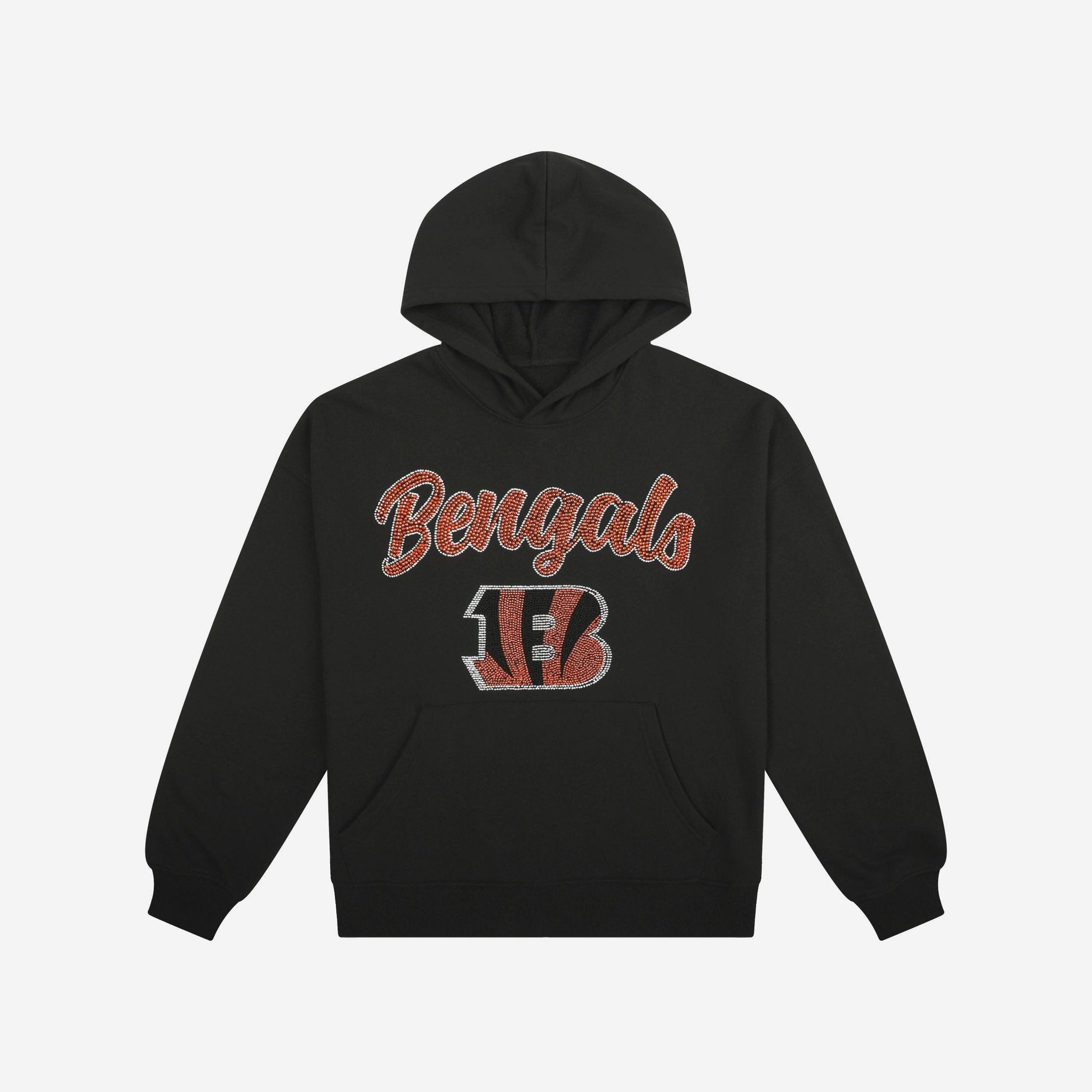 Glam is meeting game day with the Cincinnati Bengals Womens Rhinestone Logo Oversized Hoodie! With a bold, blinged-out logo across the chest and a relaxed, oversized fit, it’s made for cheering loud, lounging proud, and turning heads wherever you go. Shine bright. Stay warm. Rep your team.