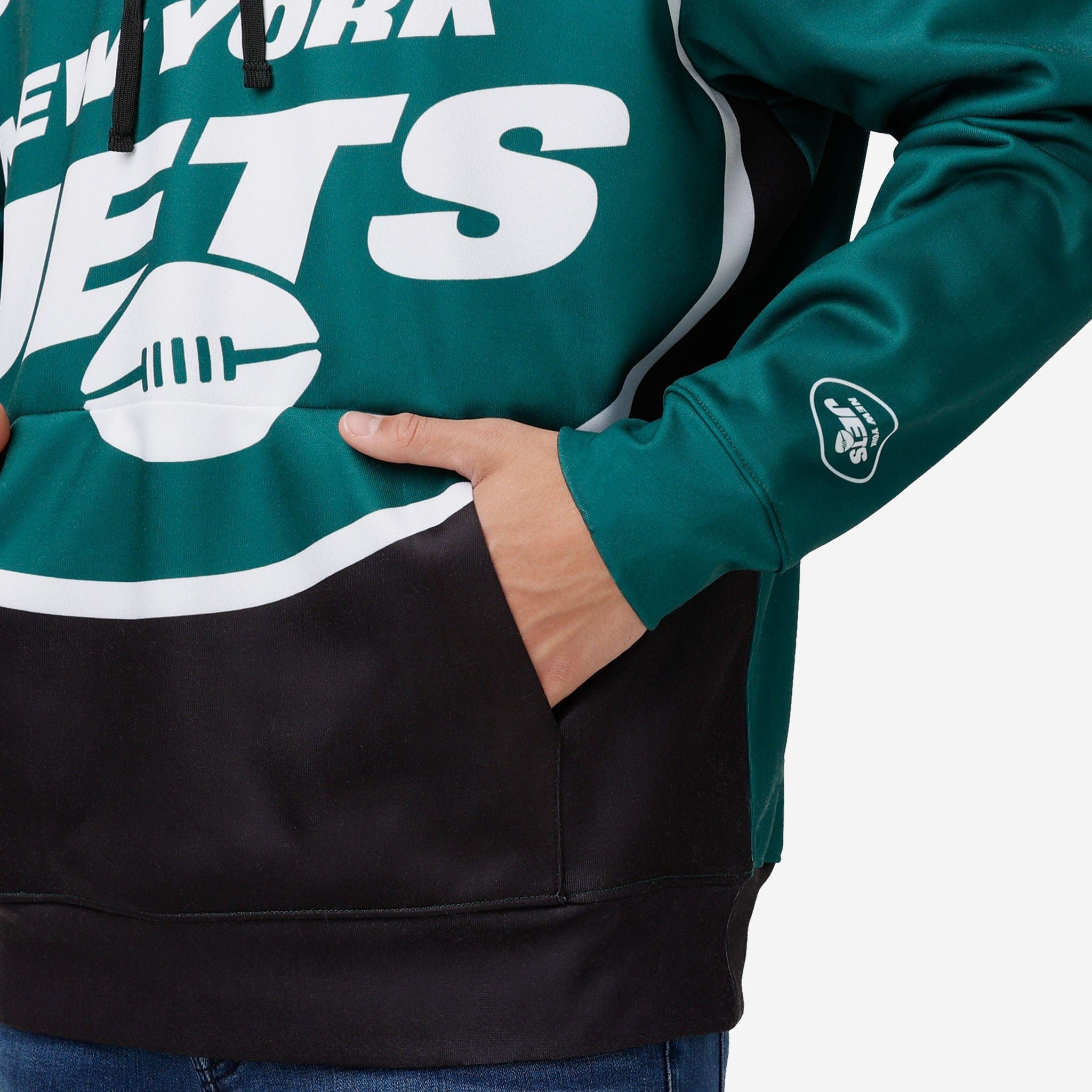 Stay comfortable. Keep warm. Look awesome. From gamedays to grocery runs, the New York Jets Bold Logo Hoodie is a must-have for any true fan's wardrobe.