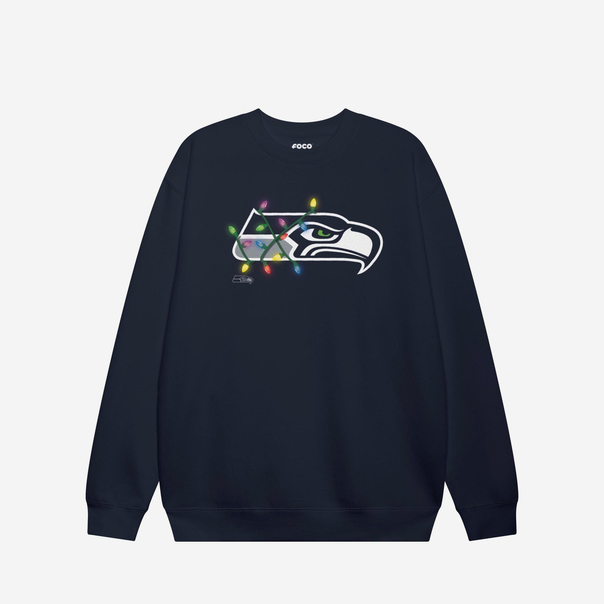 The holidays shine brighter when you’re repping your team! Add some festive fun to your fan fit with the Seattle Seahawks Primary Logo Holiday Lights Crew Neck Sweatshirt.