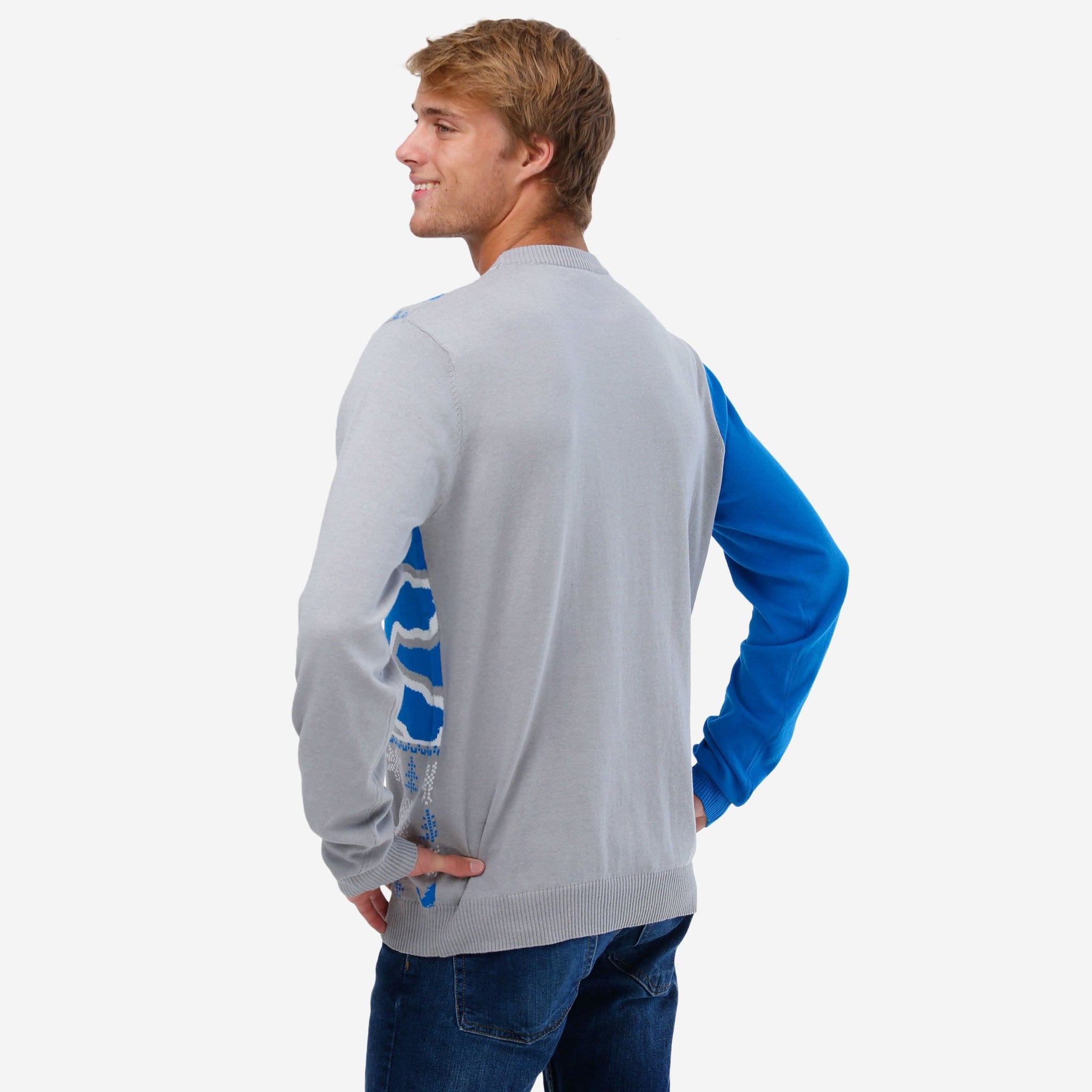 - Team-colored snowflake and tree accents throughout that will have you feeling like you're walking through a winter wonderland in this holiday sweater