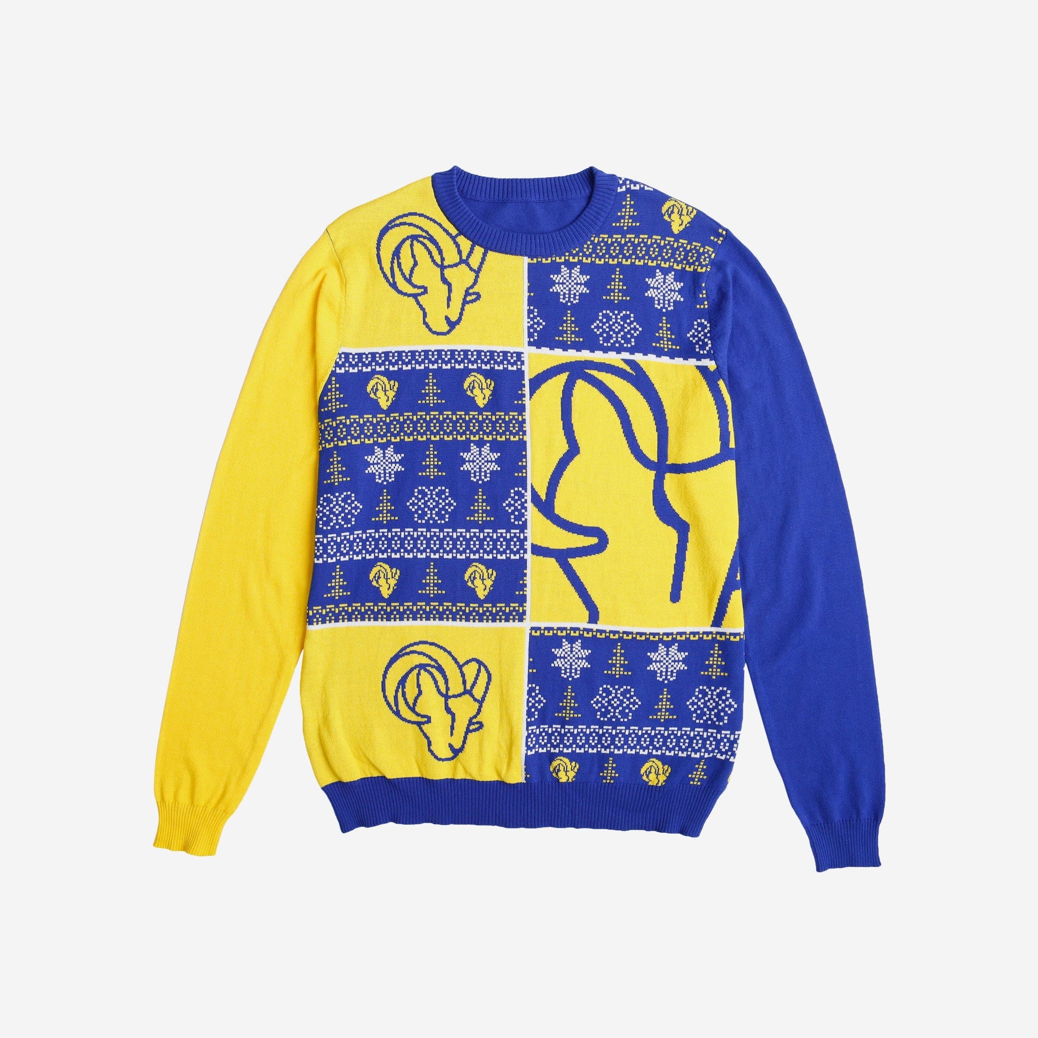 We know you're going to be busy this holiday season, so we're bringing you a busy holiday sweater to match! Spread some holiday cheer while you cheer the team on to victory at every Christmas sweater party by rocking this Los Angeles Rams Busy Block Snowfall Sweater!