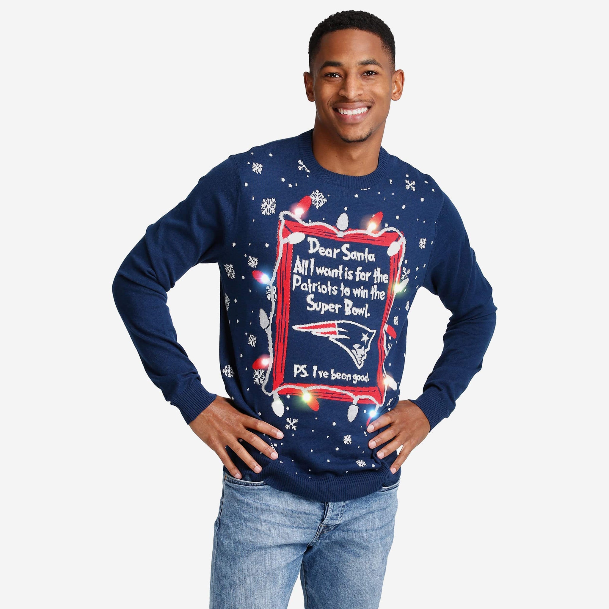 New England Patriots Dear Santa Light Up Sweater FOCO - FOCO.com