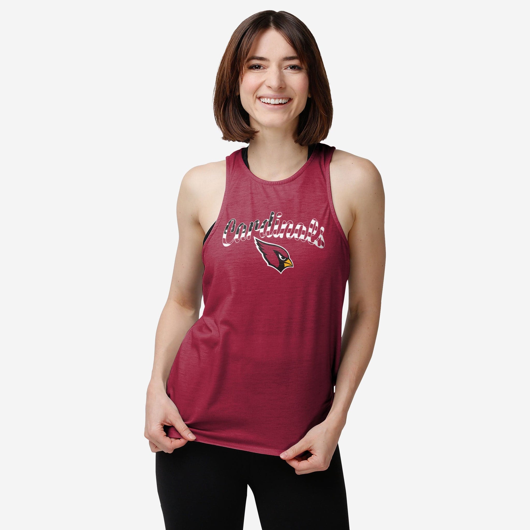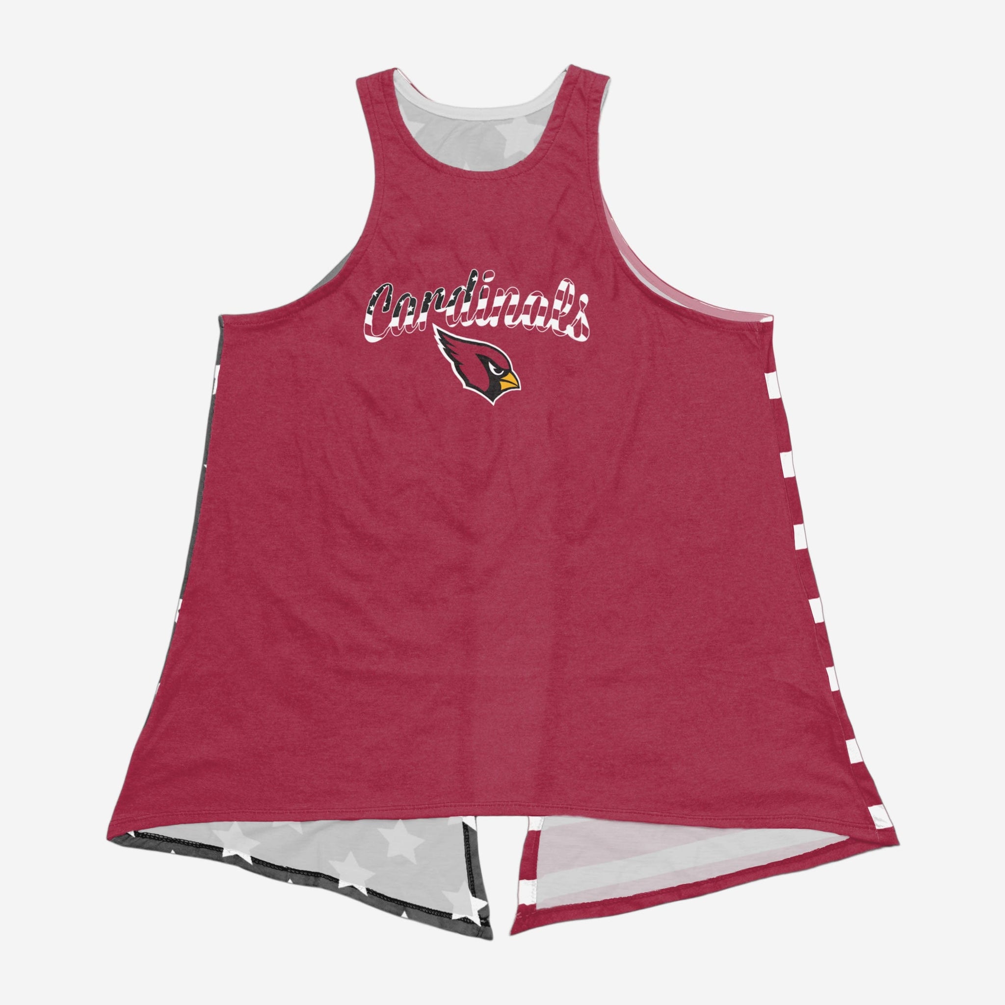 What this Arizona Cardinals Women's Americana Tie Breaker Sleeveless Top lacks in sleeves, it more than makes up for in patriotic team pride!