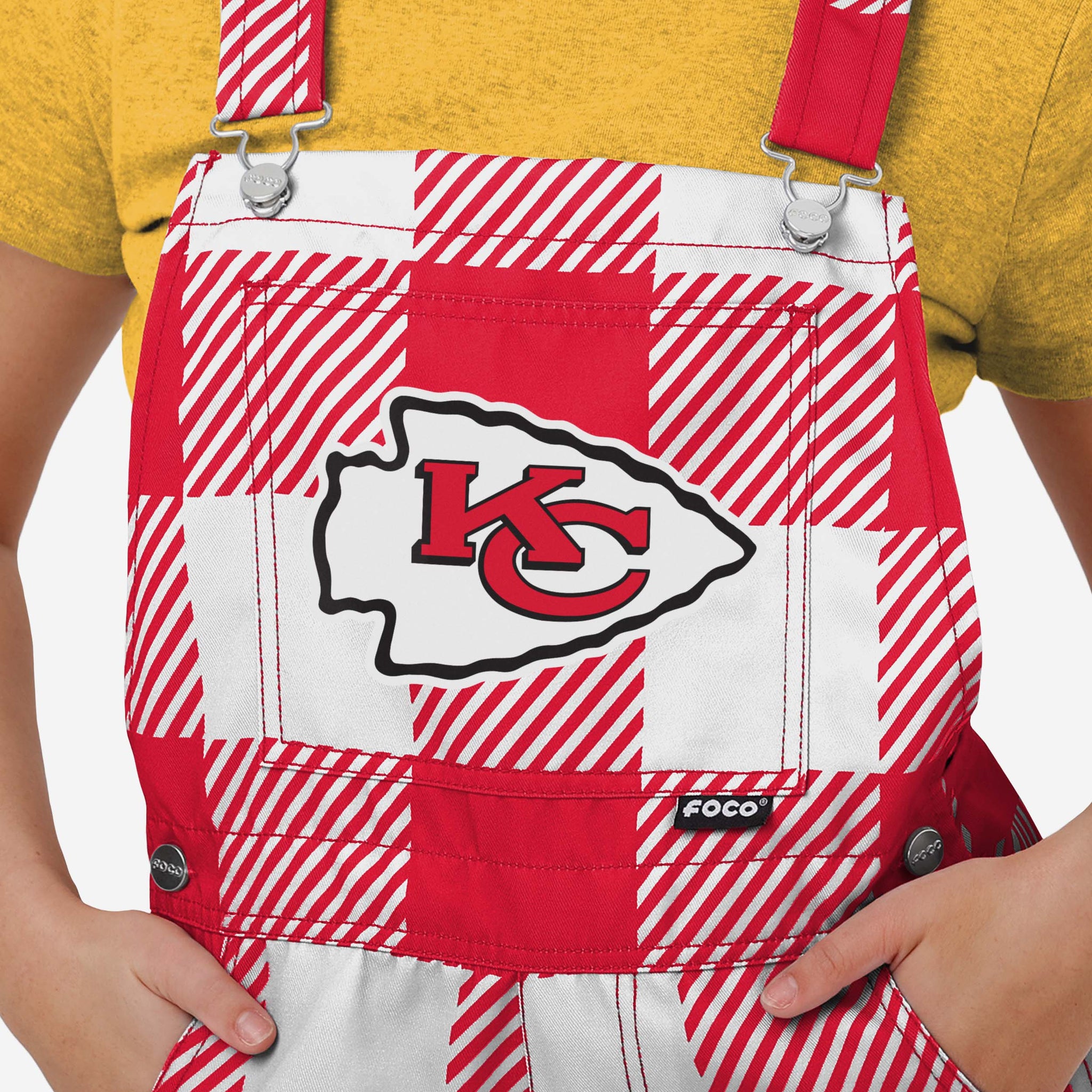 • All-over team-colored design: These shortalls are covered in the official Kansas City Chiefs colors, so you can show your team spirit with pride.