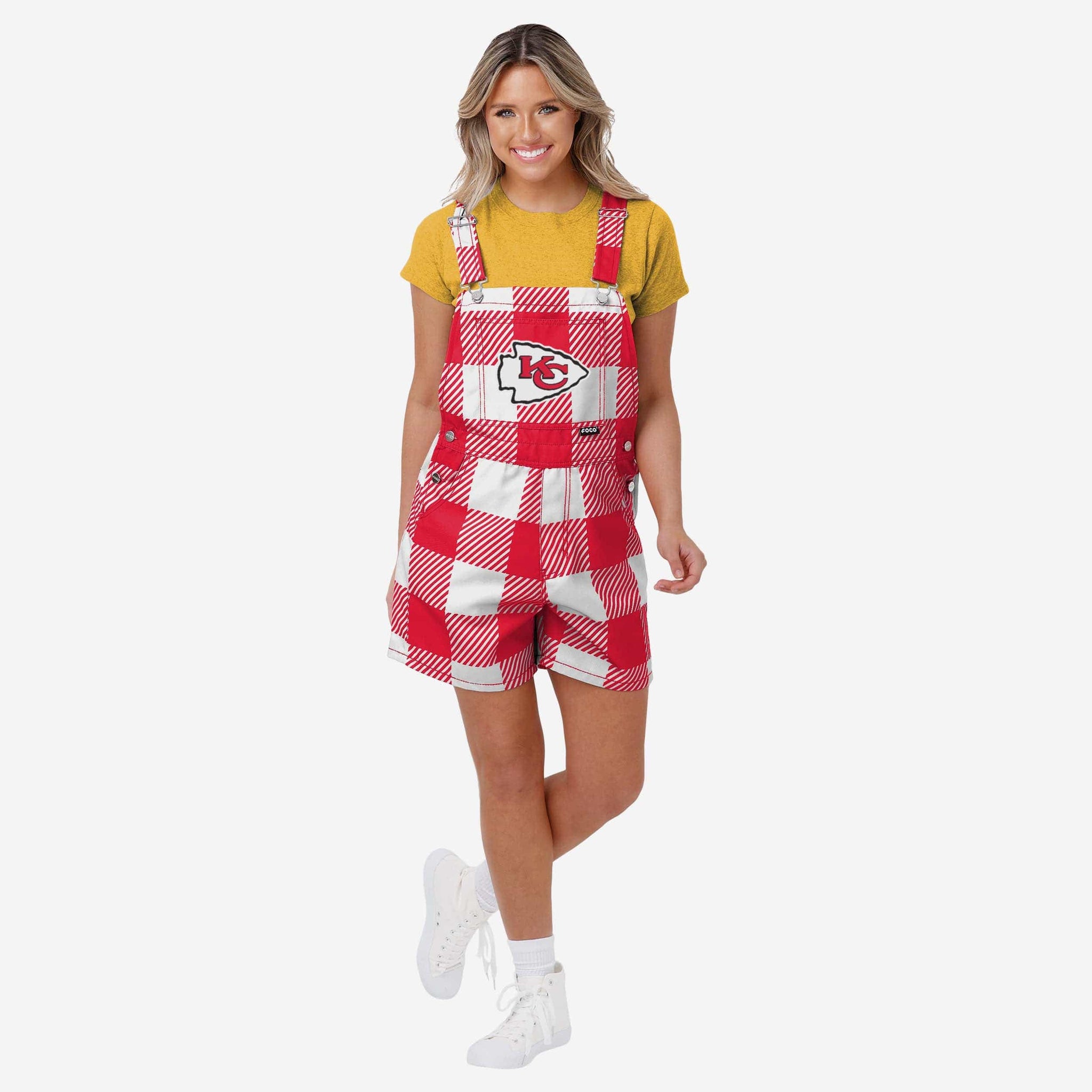 Kansas City Chiefs Womens Plaid Bib Shortalls FOCO - FOCO.com