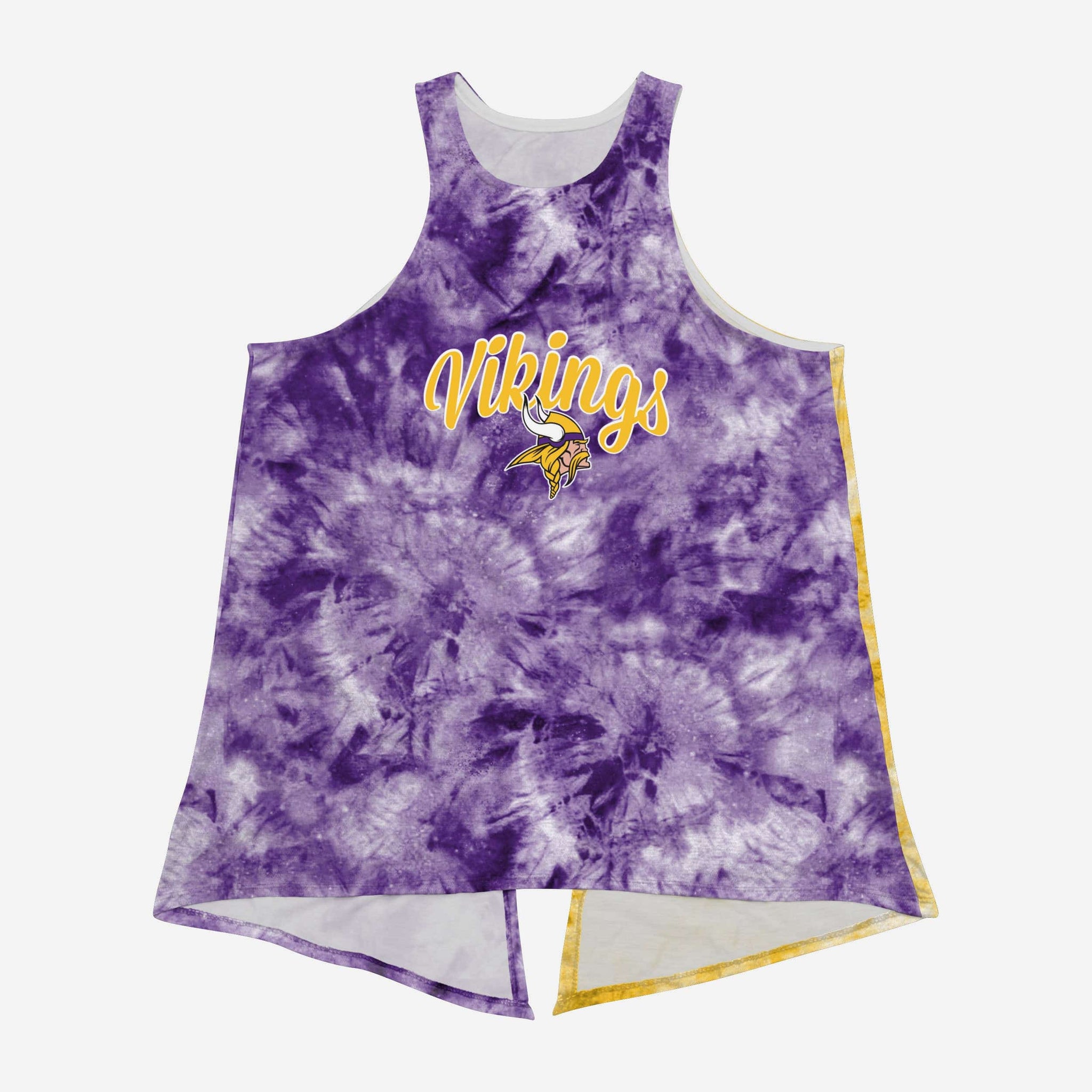 Flip the script and tie some team spirit into your beach day fan fit with this Minnesota Vikings Women's Script Wordmark Tie-Dye Tie-Breaker Sleeveless Top.