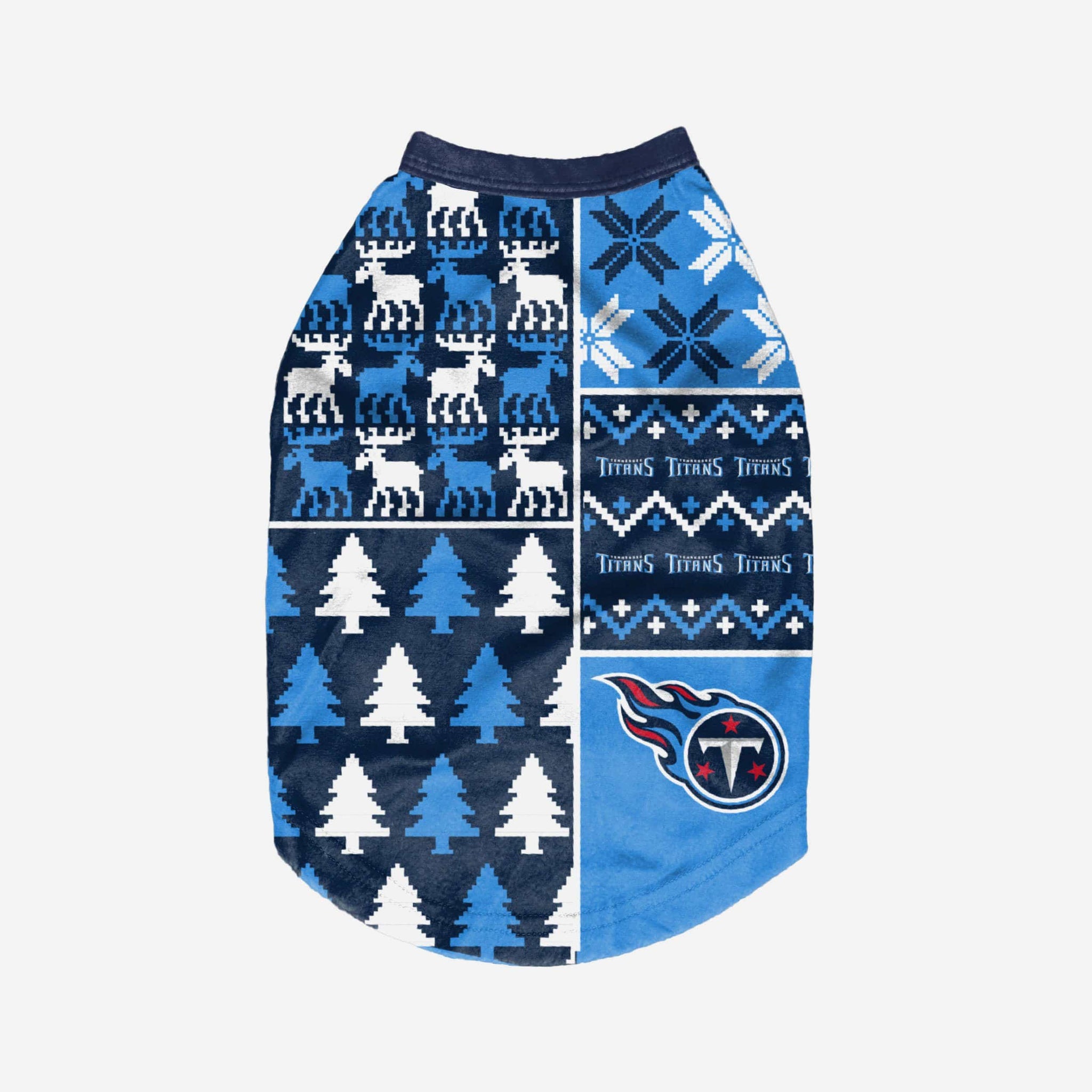 Show off your pet's holiday spirit with this dog sweater! Your good boy (or girl) will love this Tennessee Titans Busy Block Dog Sweater so much, they'll be saying "woof bark awooo" (that's "thank you" in pup language). Don't forget to match your canine's sweater with a set of matching holiday pajamas!