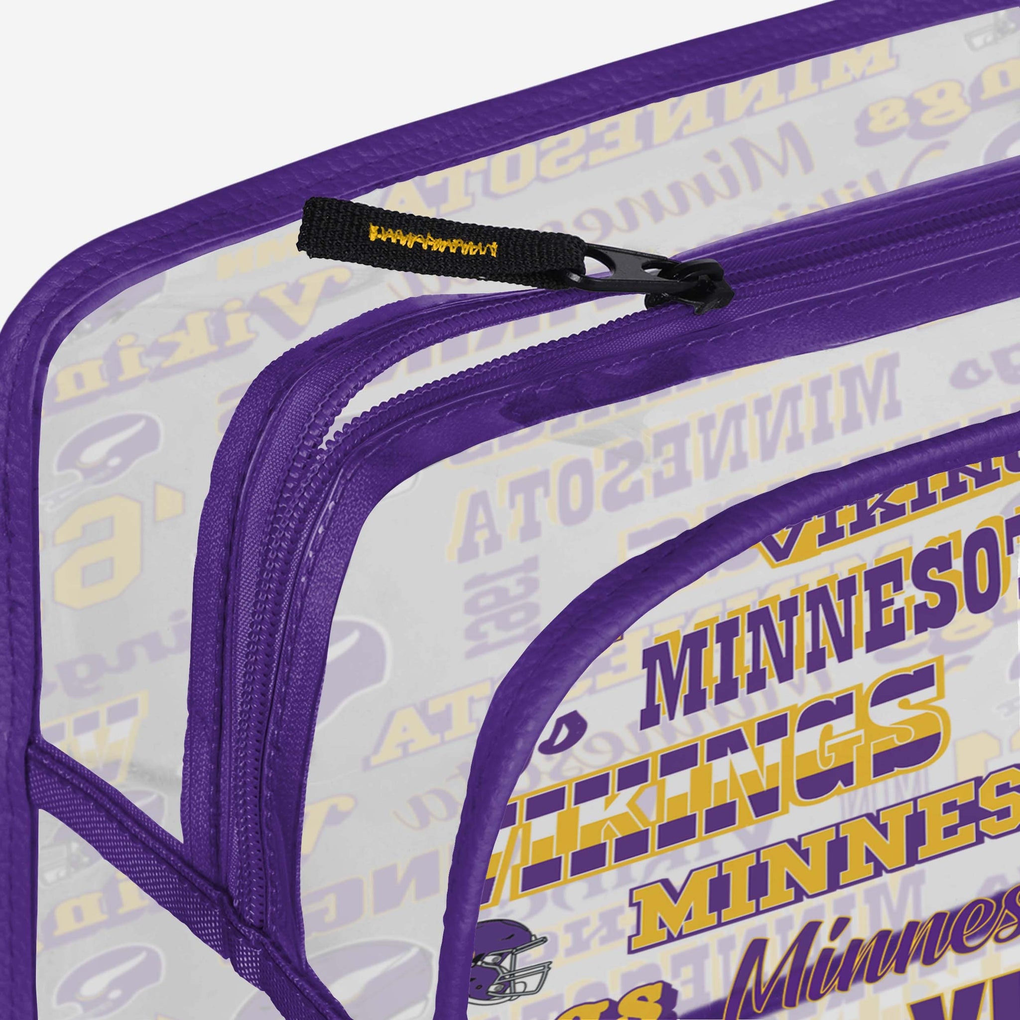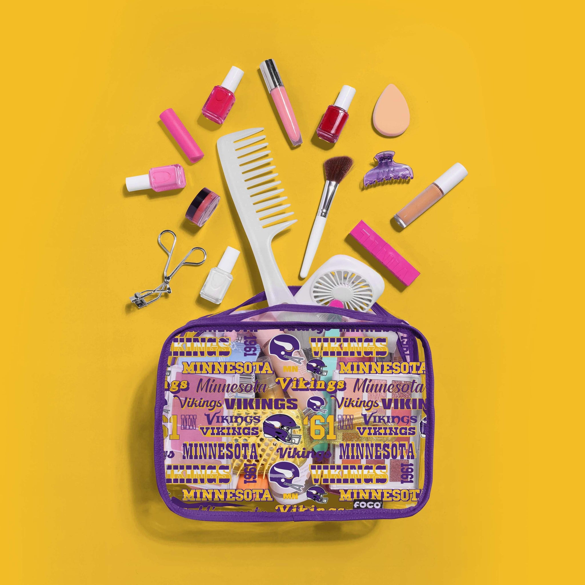 Lipstick. Hair care. Fandom. Get ready to carry it all! Wherever you go, let everyone clearly see which team you root for with a Minnesota Vikings Repeat Retro Print Clear Cosmetic Bag.