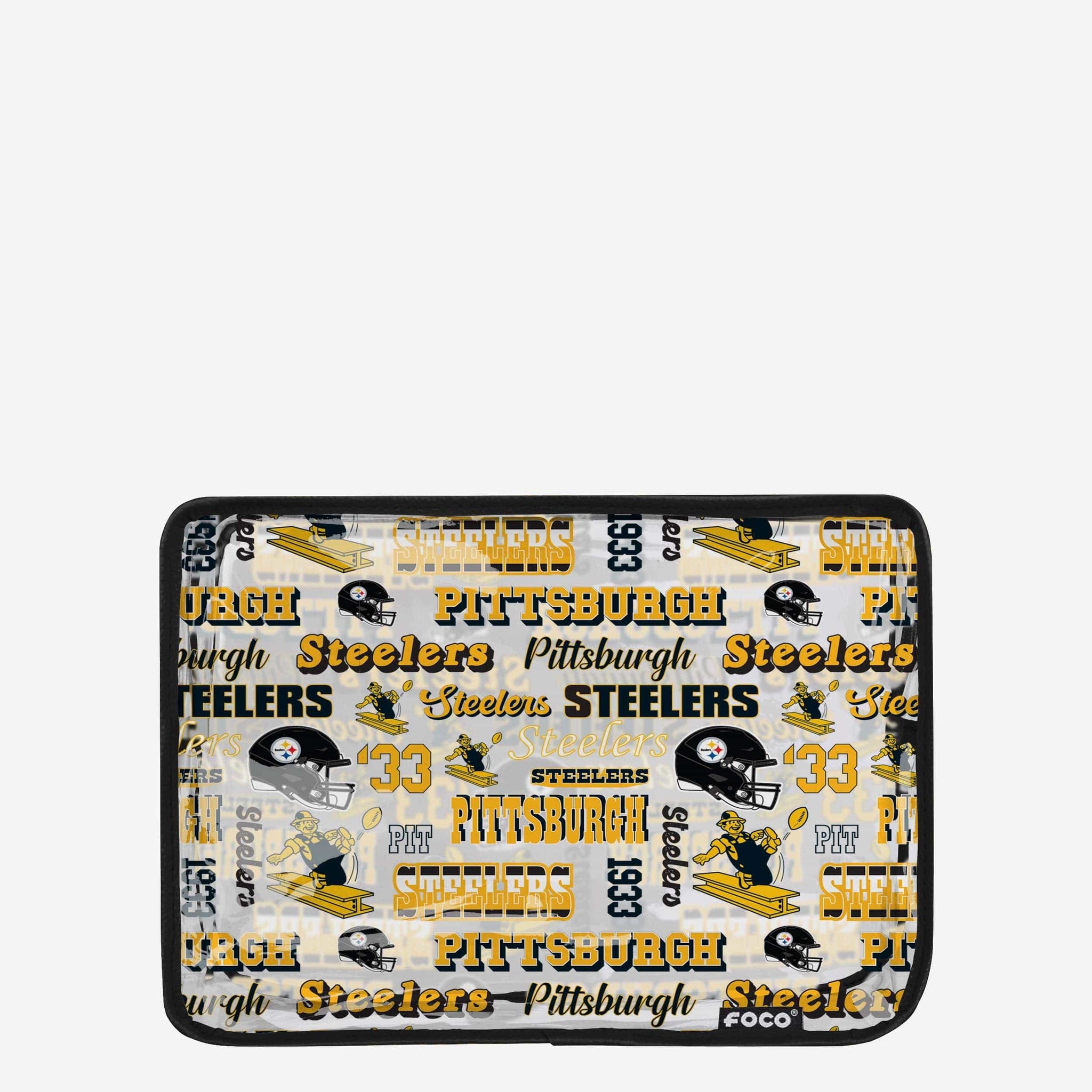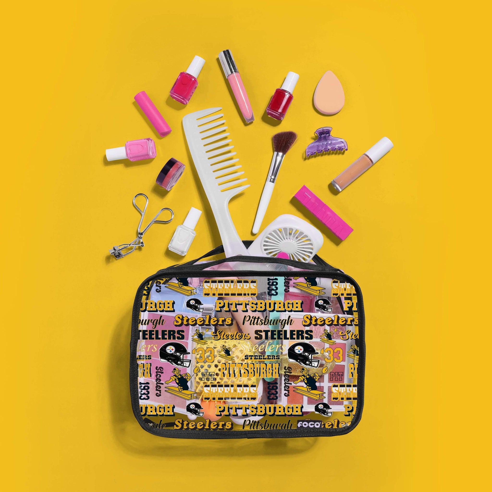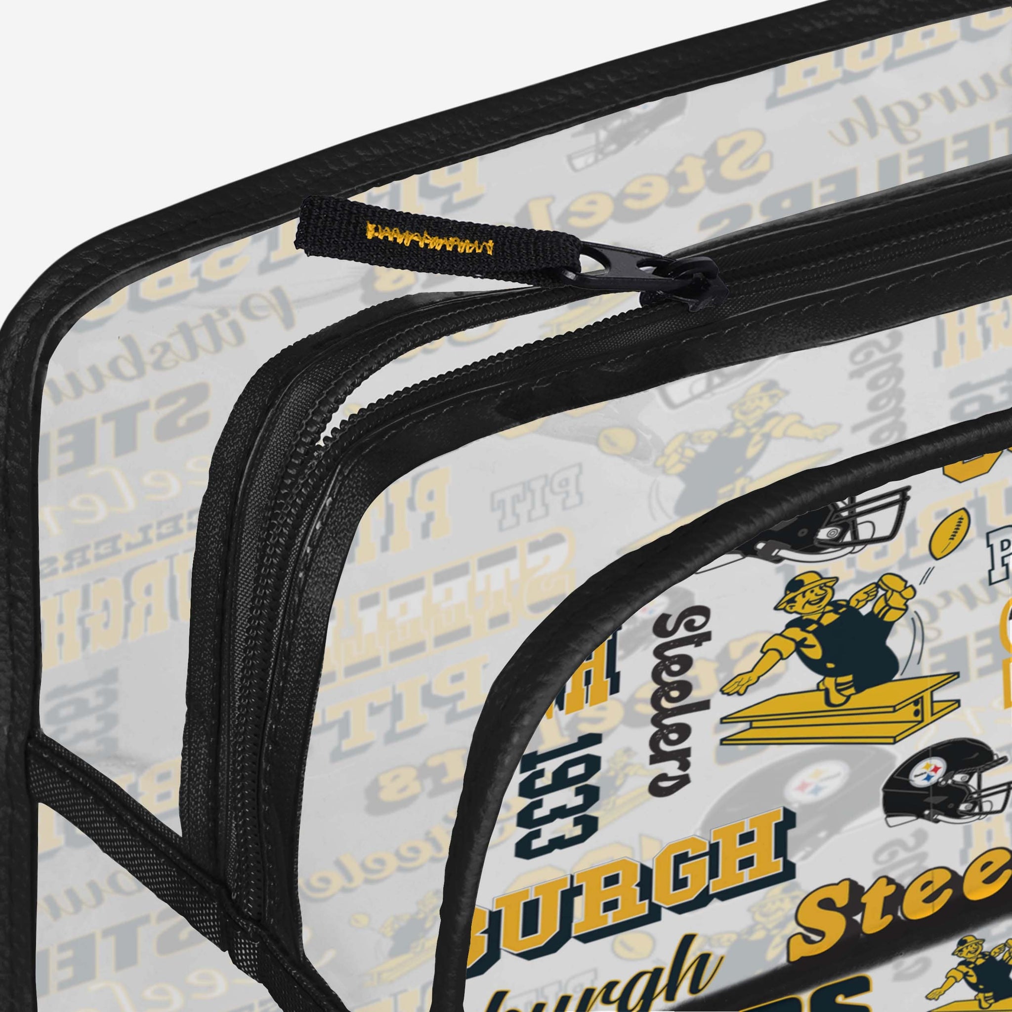 Lipstick. Hair care. Fandom. Get ready to carry it all! Wherever you go, let everyone clearly see which team you root for with a Pittsburgh Steelers Repeat Retro Print Clear Cosmetic Bag.