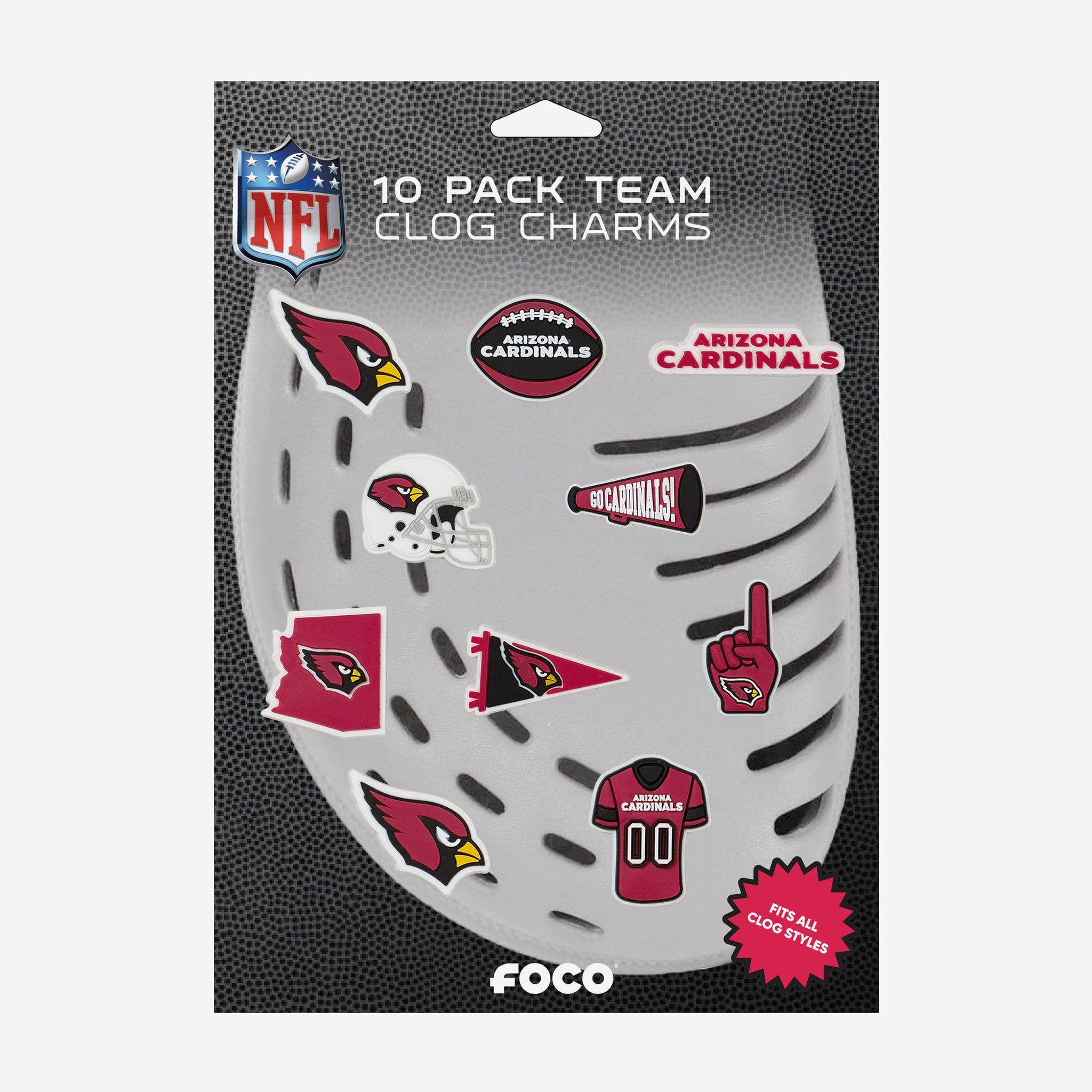 These Arizona Cardinals 10 Pack Team Clog Charms are a perfect ten. Step up your clog style game in a whole new way.