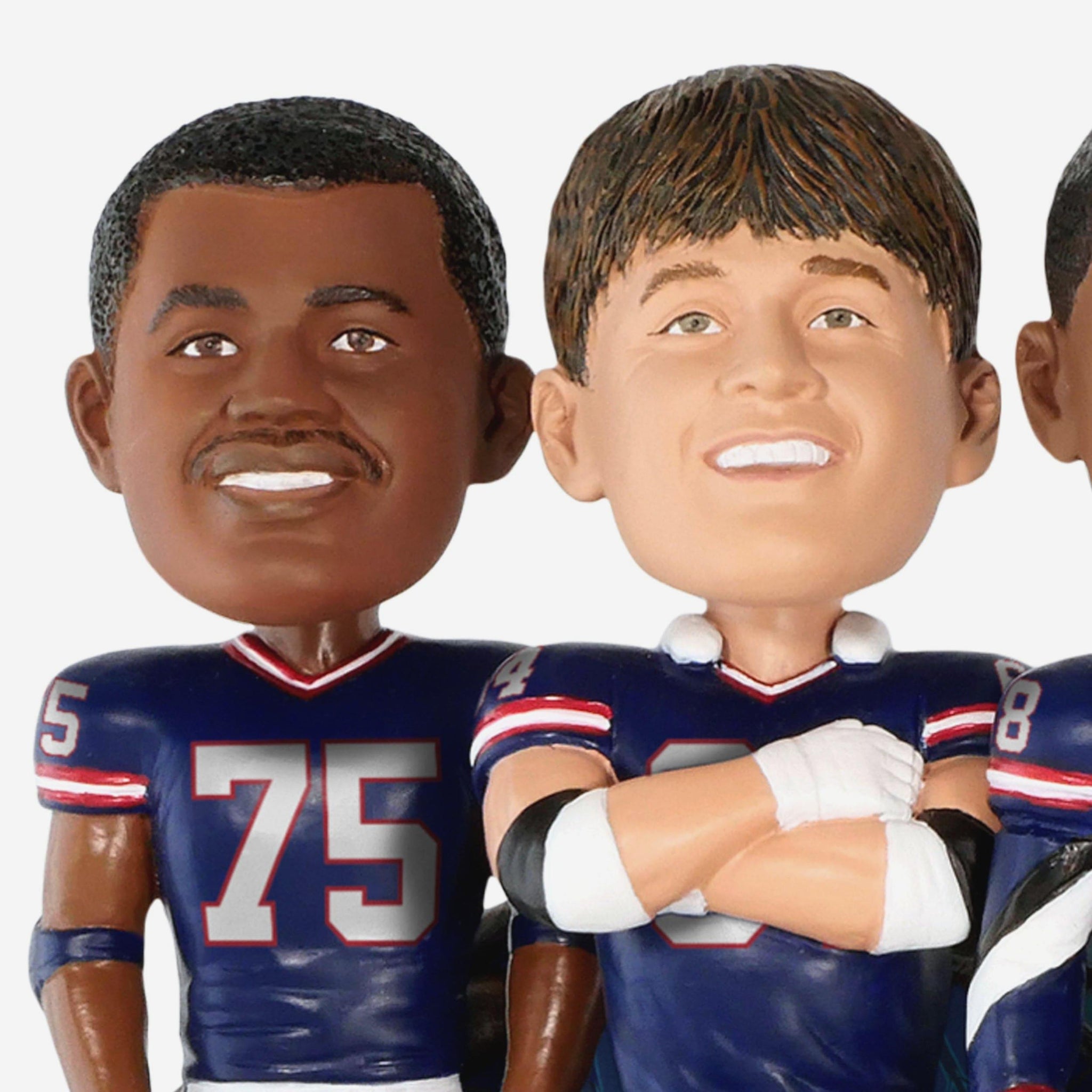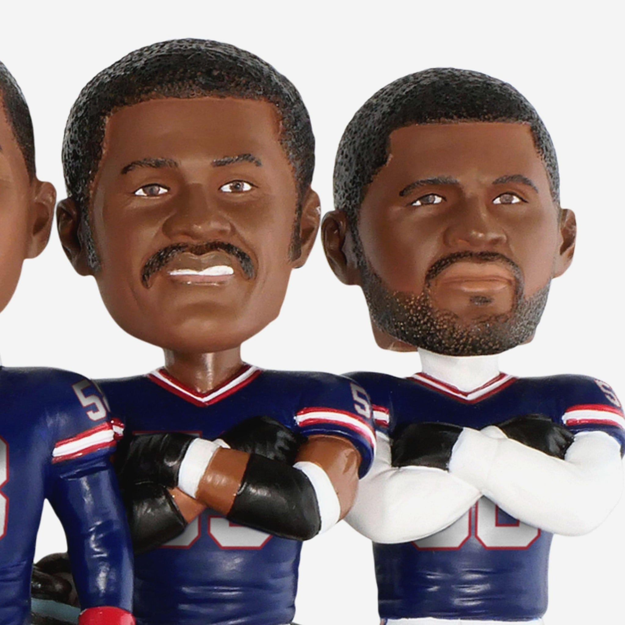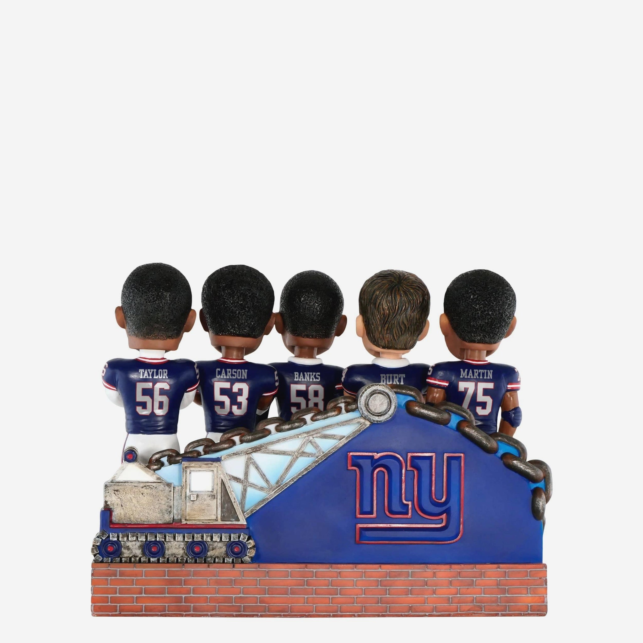 • Mini bobblehead scene featuring Lawrence Taylor, Harry Carson, Carl Banks, George Martin, and Jim Burt standing shoulder to shoulder in their classic New York gameday uniforms