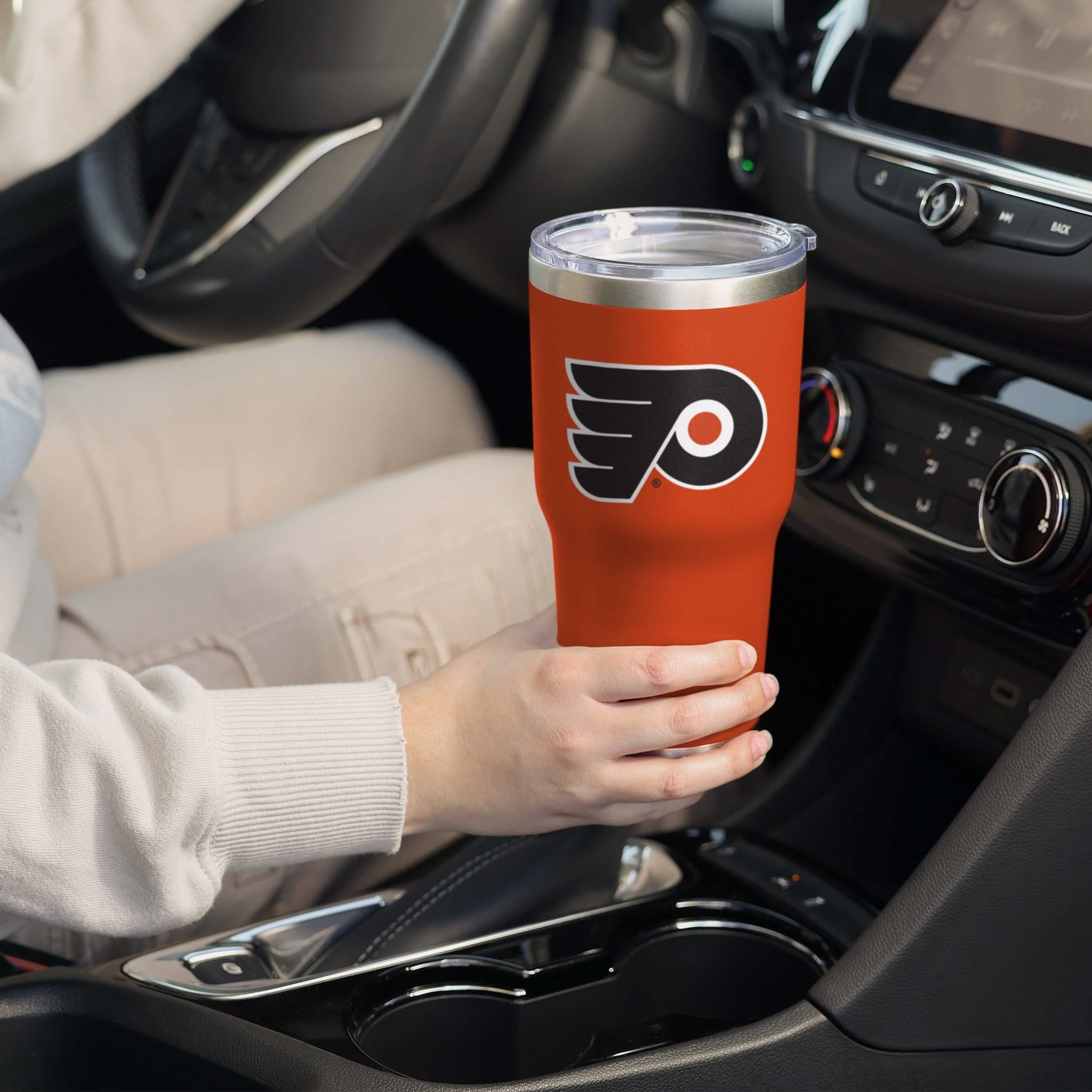 Whether you're rehydrating at the gym with some cold water or curled up on the couch sipping a nice, warm coffee, this Philadelphia Flyers Team Logo 30 oz. Tumbler is here to keep your drink just how you like it.