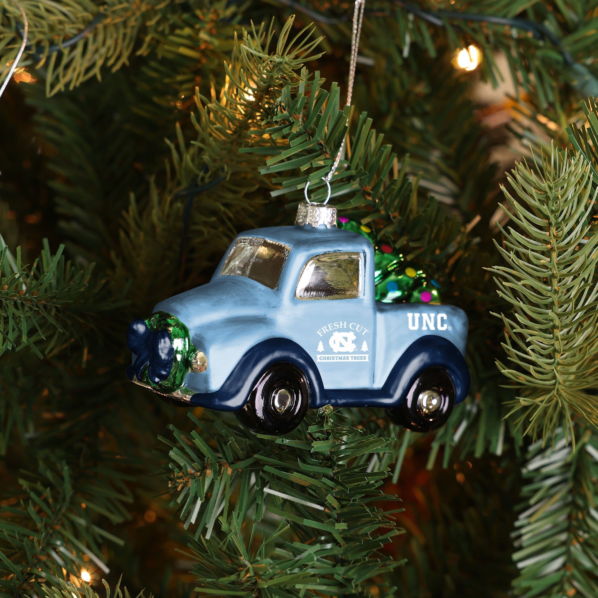 Want to make sure your Christmas tree keeps on truckin' for the holidays? You're in luck thanks to this North Carolina Tar Heels Blown Glass Truck!