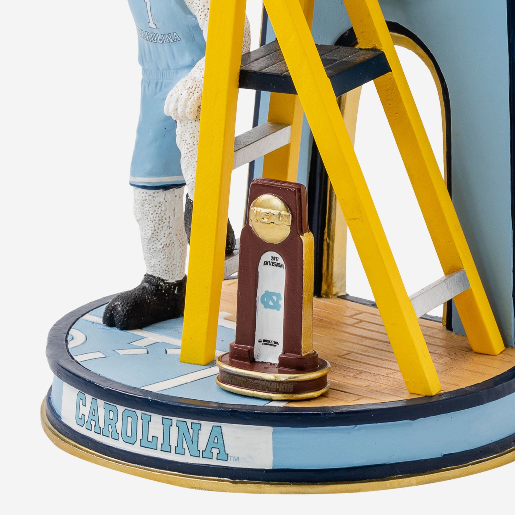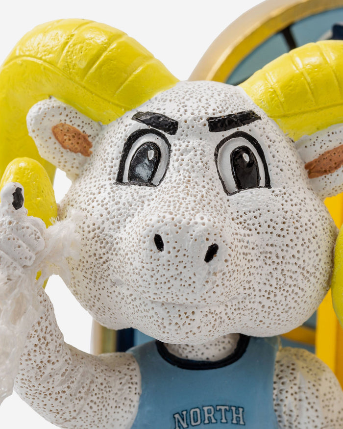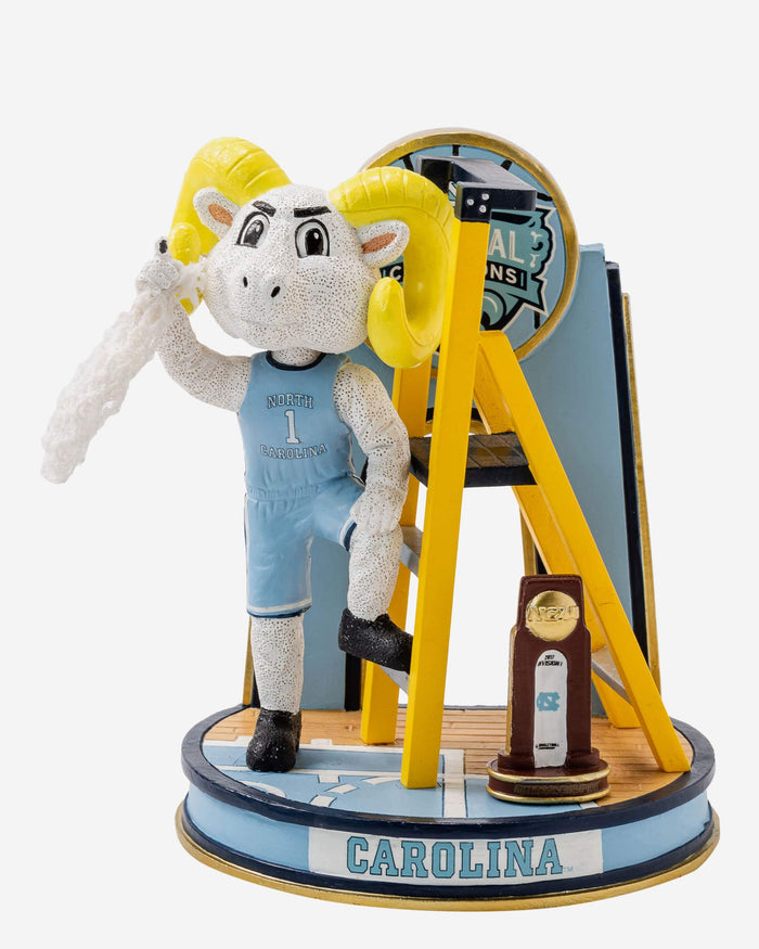Championship gold looks even better alongside some Carolina Blue. Re-live an unforgettable championship run with the Rameses North Carolina Tar Heels 2007 NCAA Men's Basketball National Champions Cutting the Net Mascot Mini Bobblehead Scene.