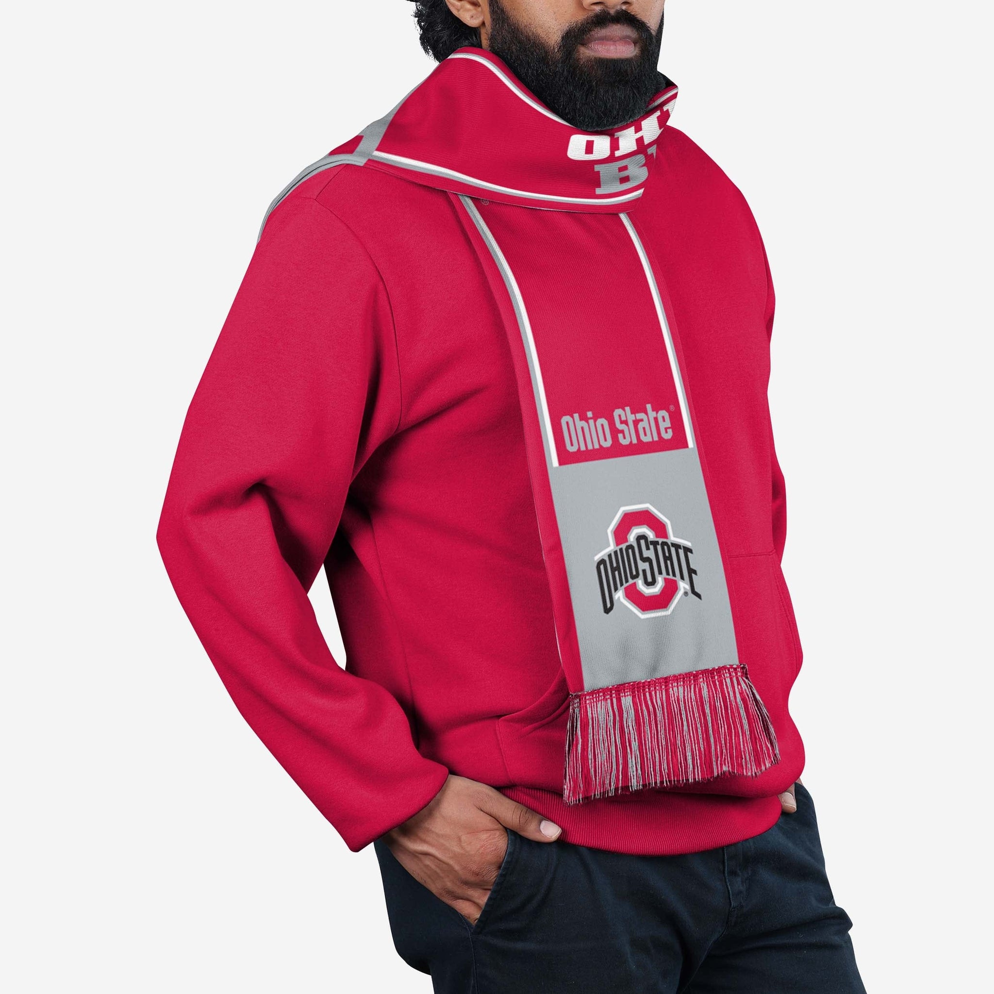 One scarf. Two ways to wear it. Double down and fan up with the Ohio State Buckeyes Double Sided Reversible Thematic Scarf.