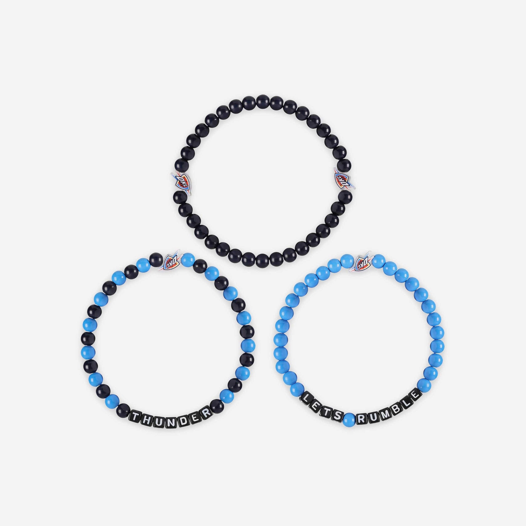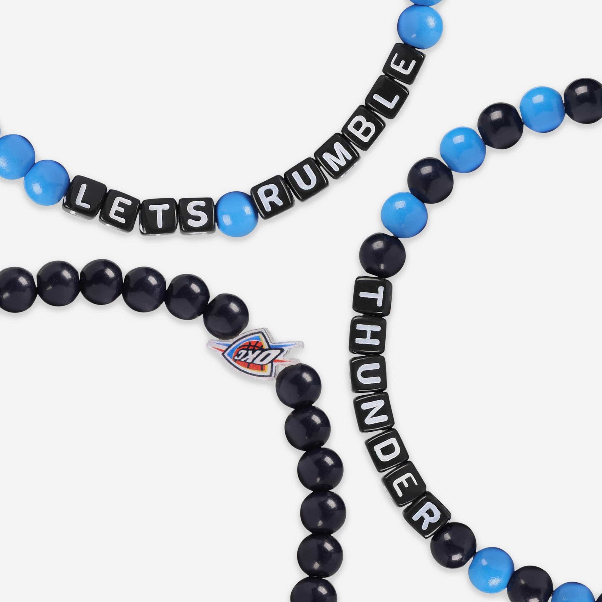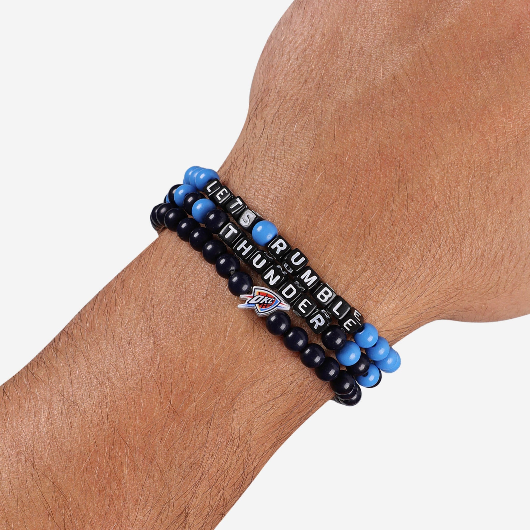 A whole new way to rep the team in style is here. Step up your fan fashion sense with this Oklahoma City Thunder 3 Pack Beaded Friendship Bracelet. These matching friendship bracelets have an all-over team-colored design and team logo displays, which makes them the perfect way to show your support for the Oklahoma City Thunder on gamedays and every day in between.