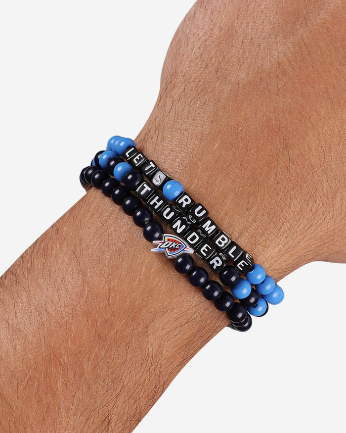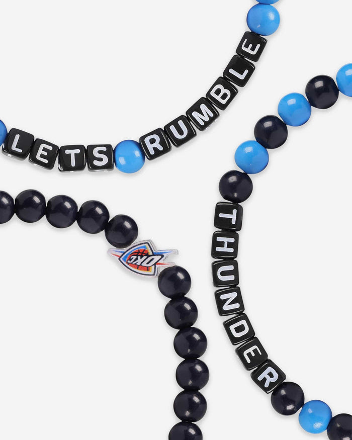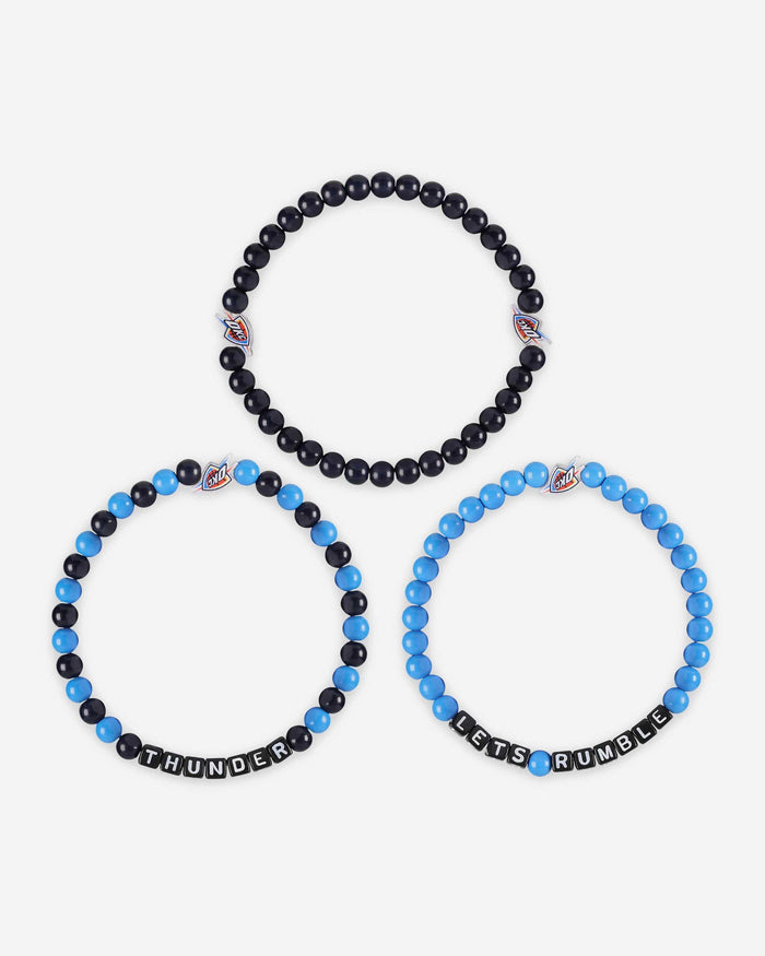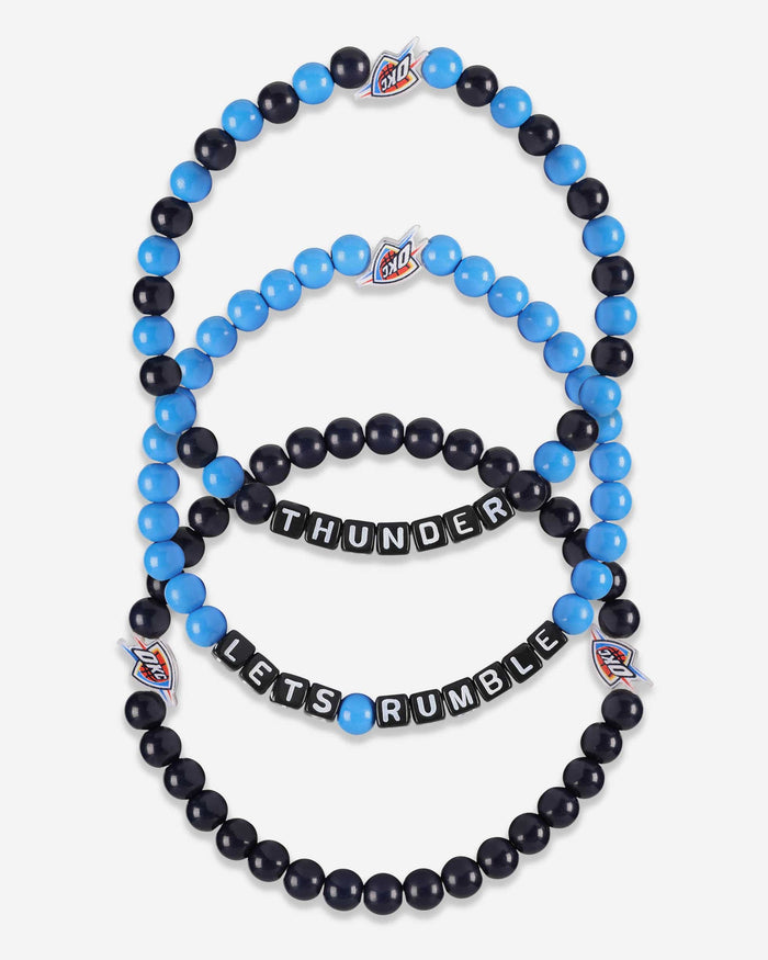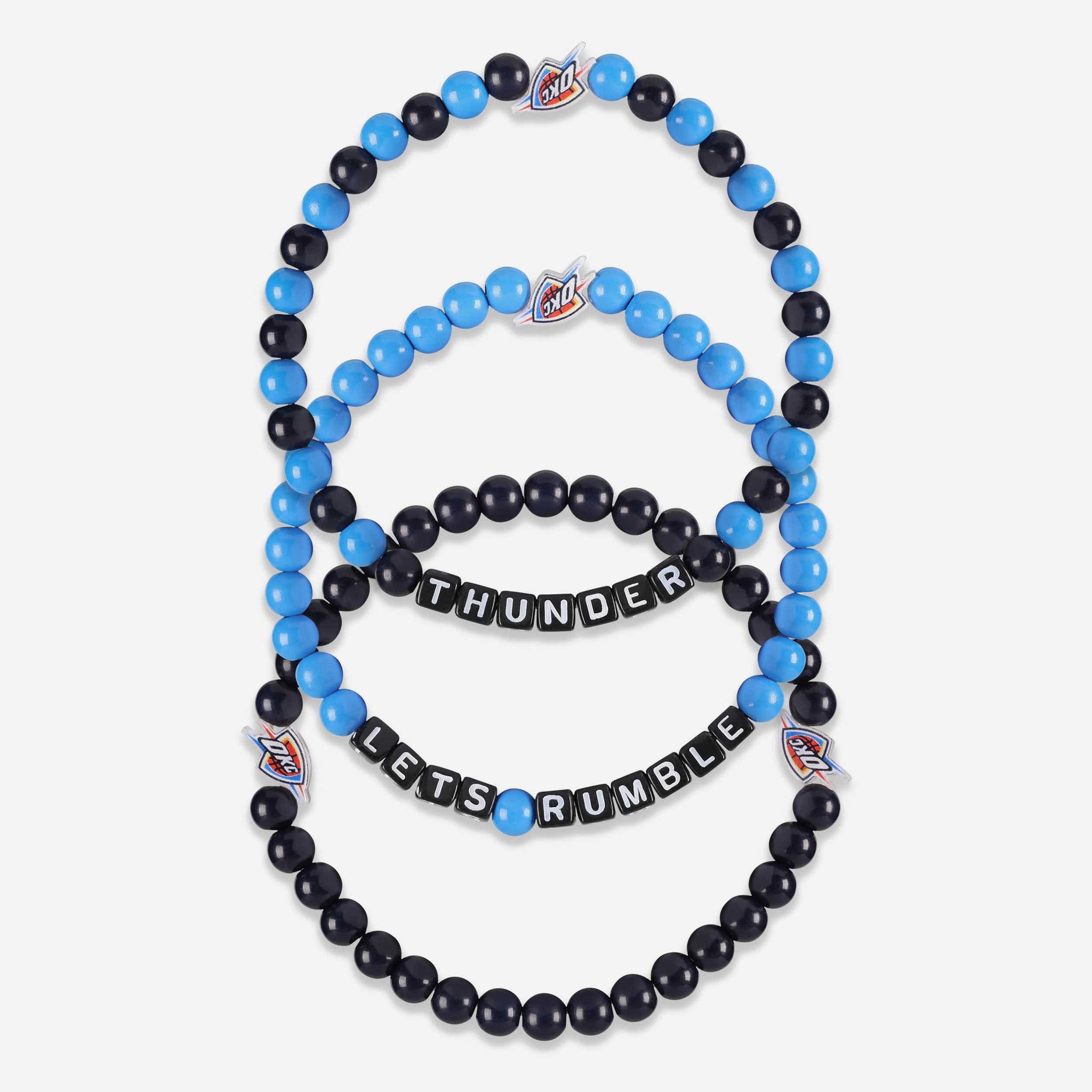 A whole new way to rep the team in style is here. Step up your fan fashion sense with this Oklahoma City Thunder 3 Pack Beaded Friendship Bracelet. These matching friendship bracelets have an all-over team-colored design and team logo displays, which makes them the perfect way to show your support for the Oklahoma City Thunder on gamedays and every day in between.