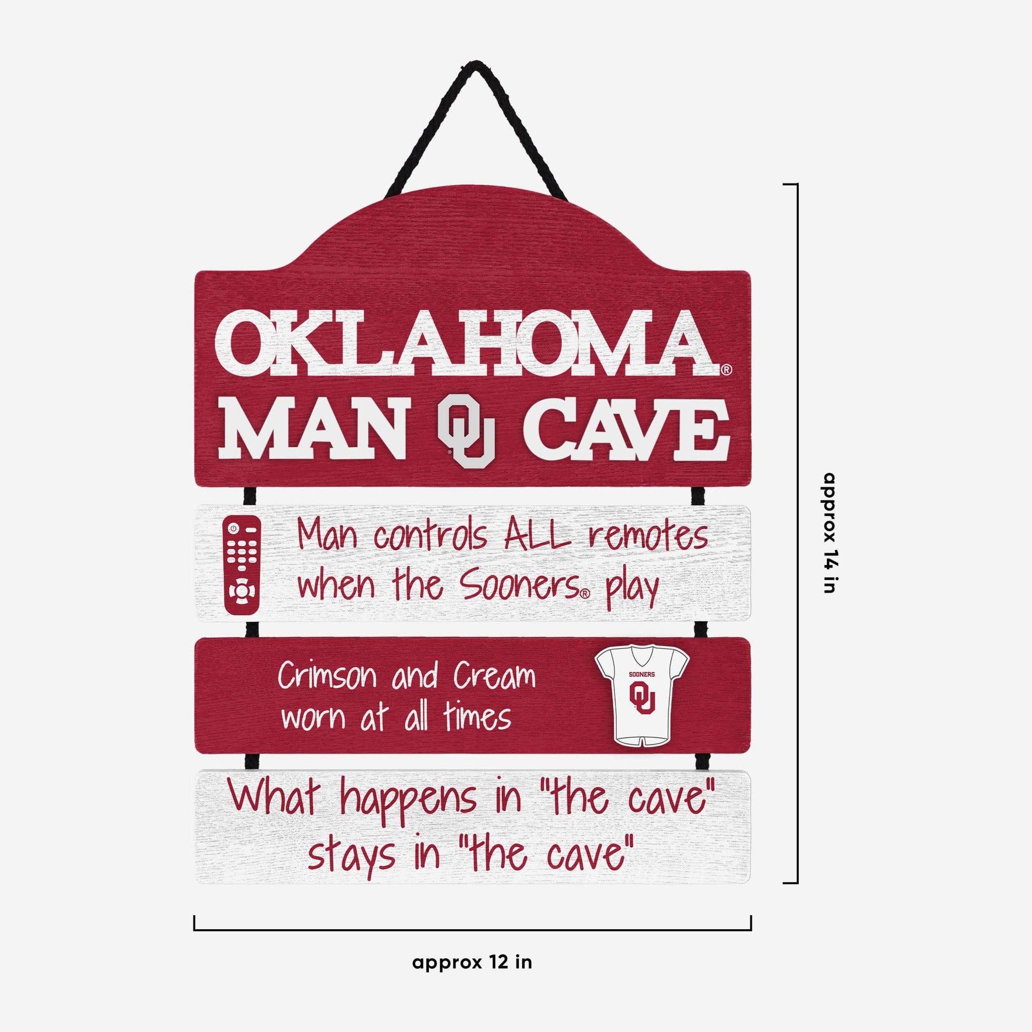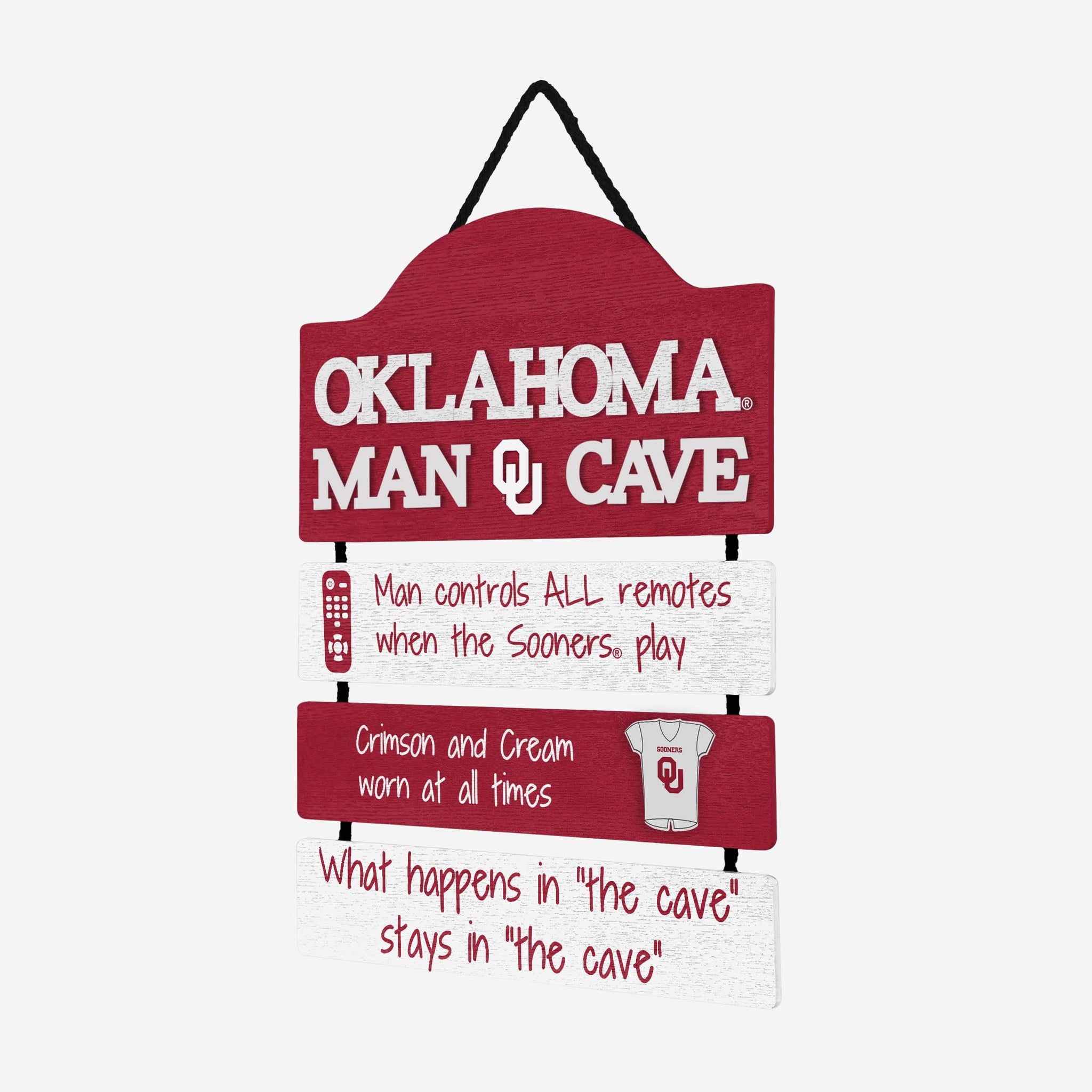 So, you're hosting the big watch party, and want to make sure you've decorated enough to impress your fellow fans. We've got you covered. This Oklahoma Sooners Mancave Sign lets everyone know who the fan in charge is, and gives your home field plenty of advantage.