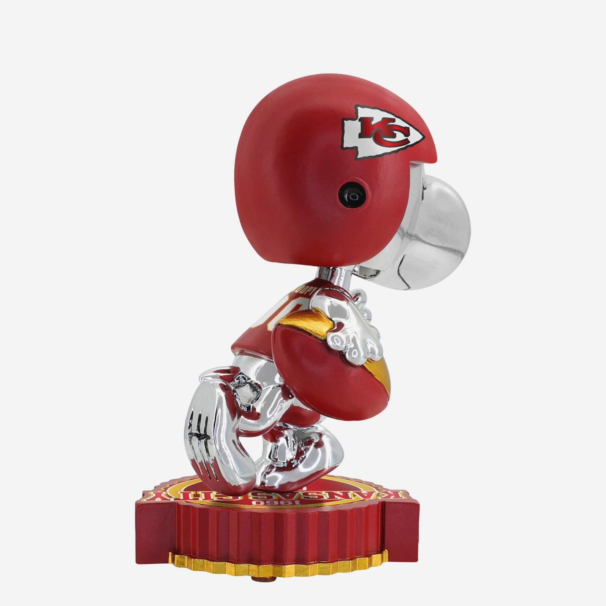 Snoopy is suiting up for game day in dazzling style! Add a little gridiron glow to your collection with this Kansas City Chiefs Snoopy Peanuts Electroplated Medium Bighead Bobblehead.
