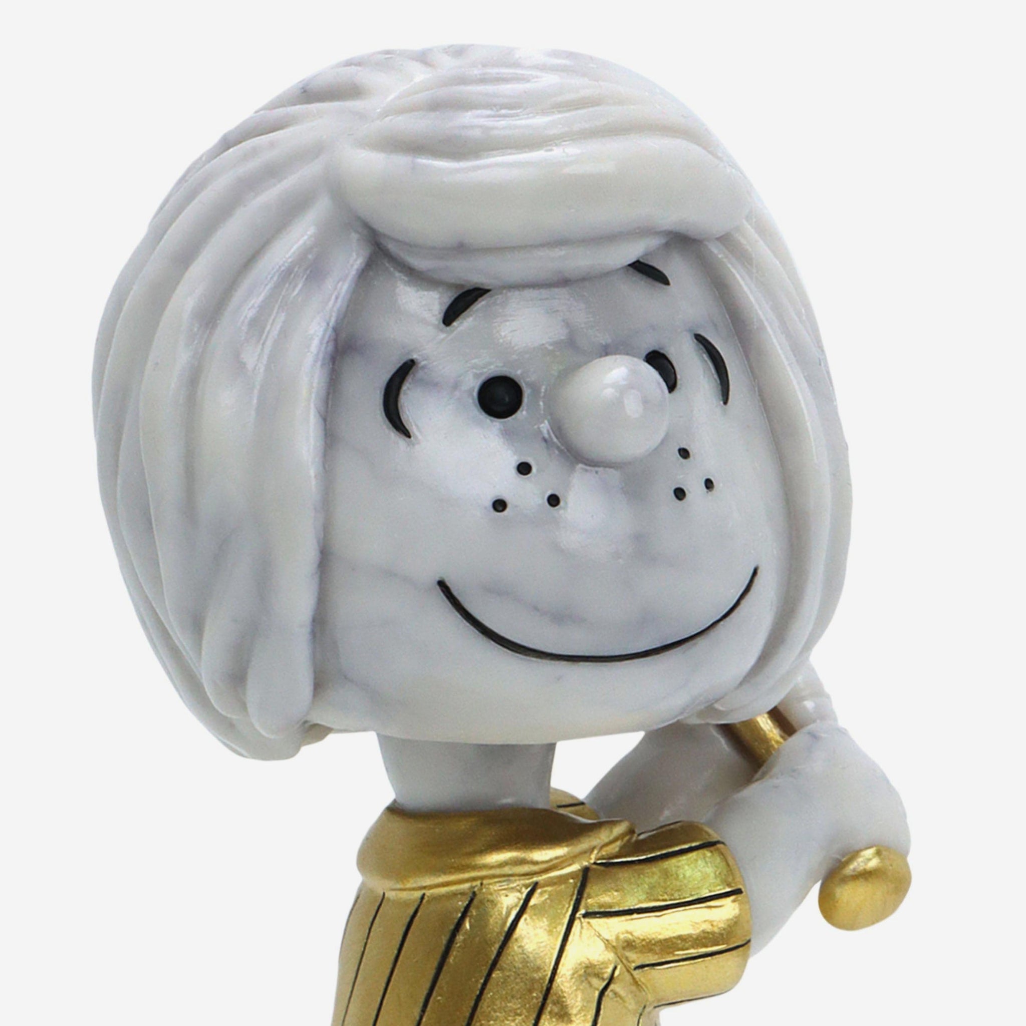 • Portrays Peppermint Patty wearing a gold shirt and black pants, ready to celebrate 75 years since her first comic appearance
