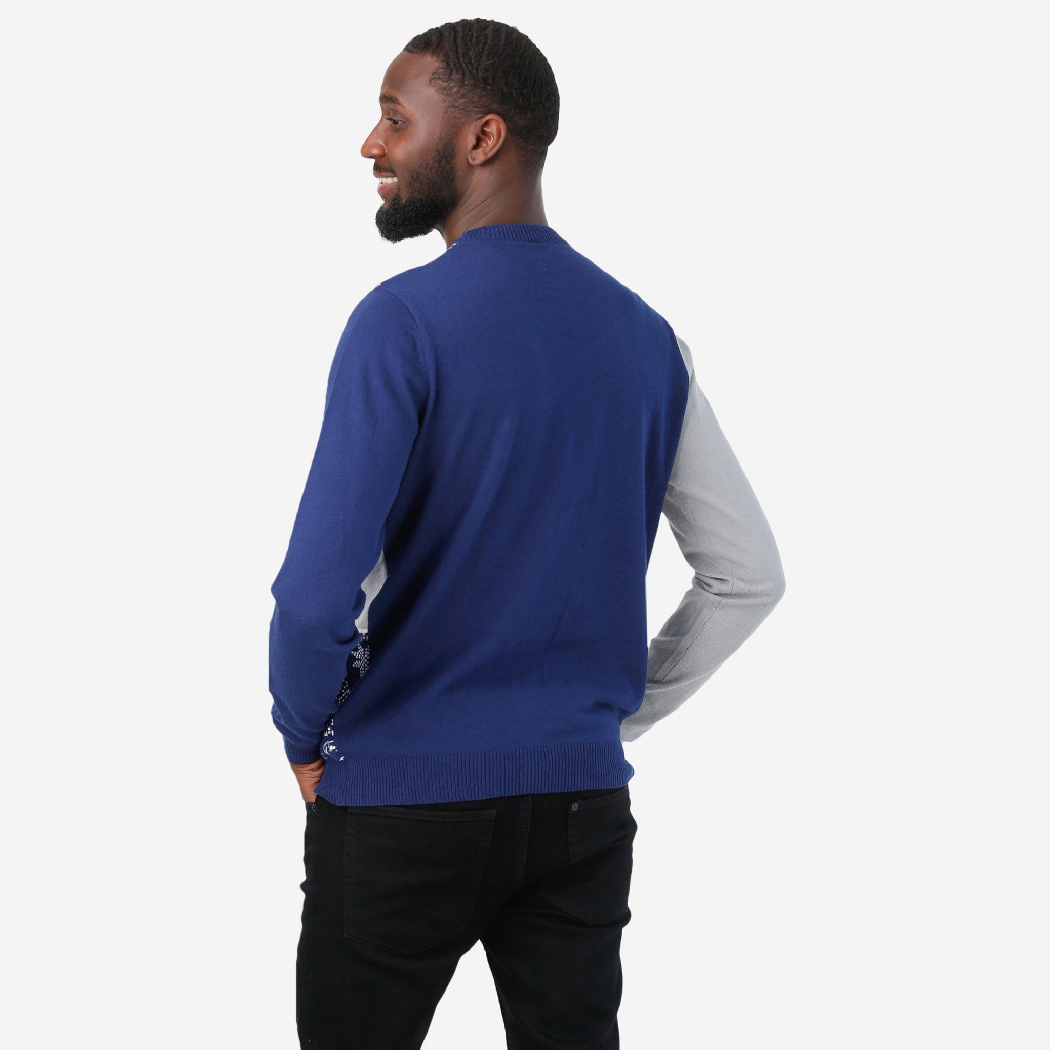 - Team-colored snowflake and tree accents throughout that will have you feeling like you're walking through a winter wonderland in this holiday sweater