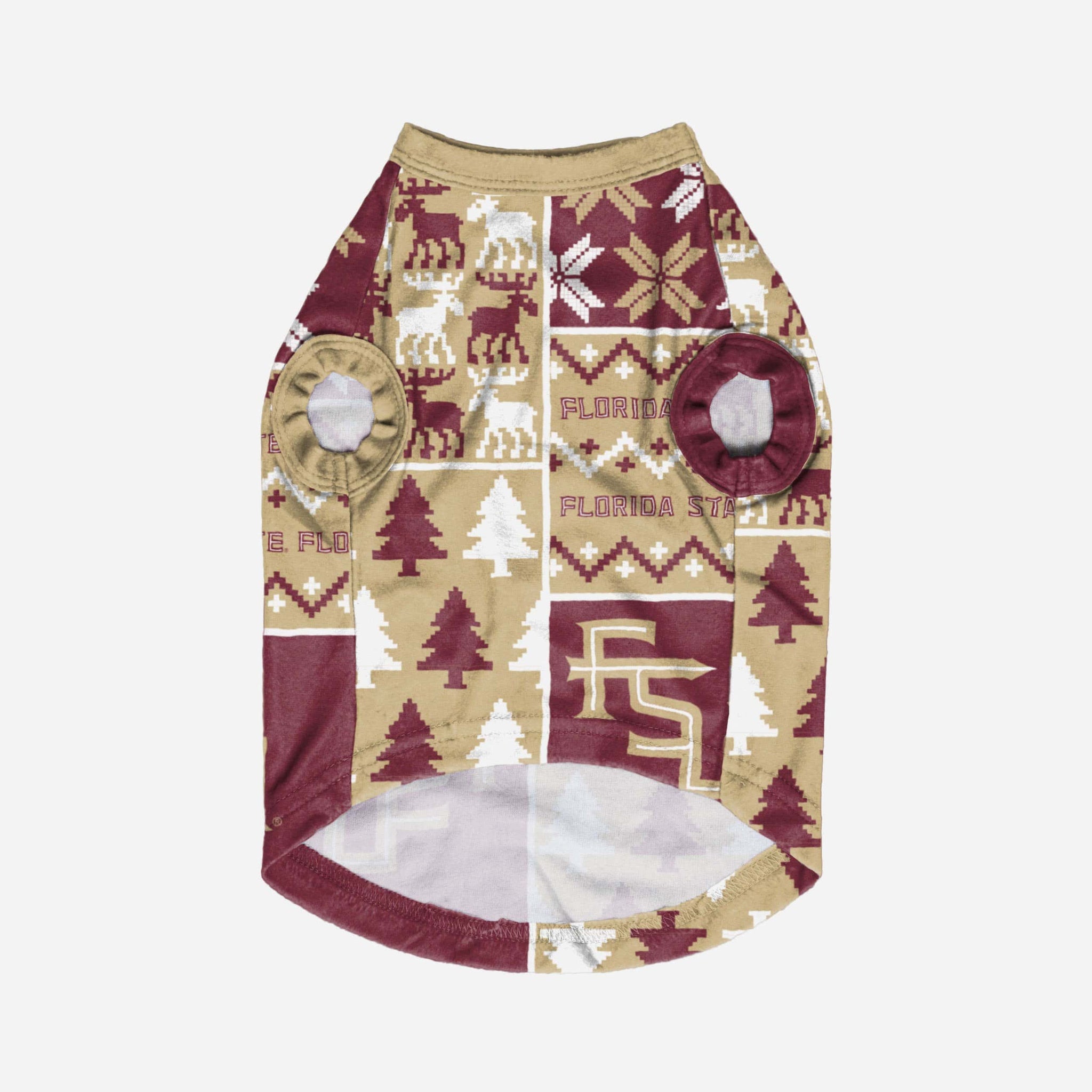 Show off your pet's holiday spirit with this dog sweater! Your good boy (or girl) will love this Florida State Seminoles Busy Block Dog Sweater so much, they'll be saying "woof bark awooo" (that's "thank you" in pup language). Don't forget to match your canine's sweater with a set of matching holiday pajamas!