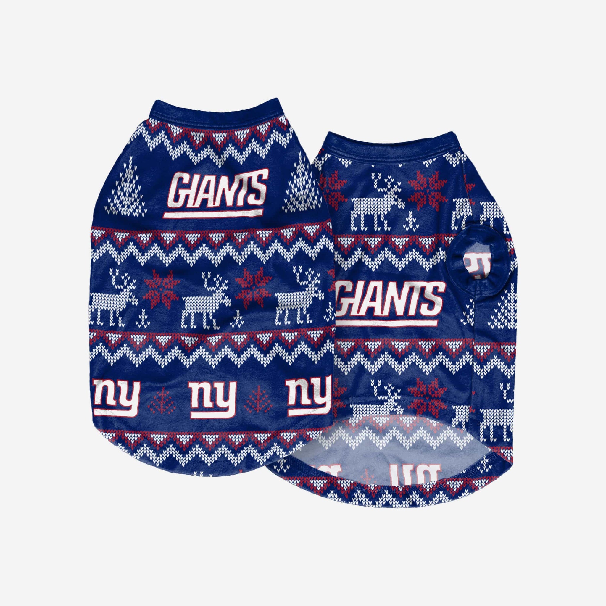 Show off your pet's holiday spirit with this dog sweater! Your good boy (or girl) will love this New York Giants Dog Family Holiday Ugly Sweater so much, they'll be saying WOOF BARK AWOOO (that's THANK YOU in pup language). Don't forget to match your canine's sweater with a set of matching holiday pajamas!