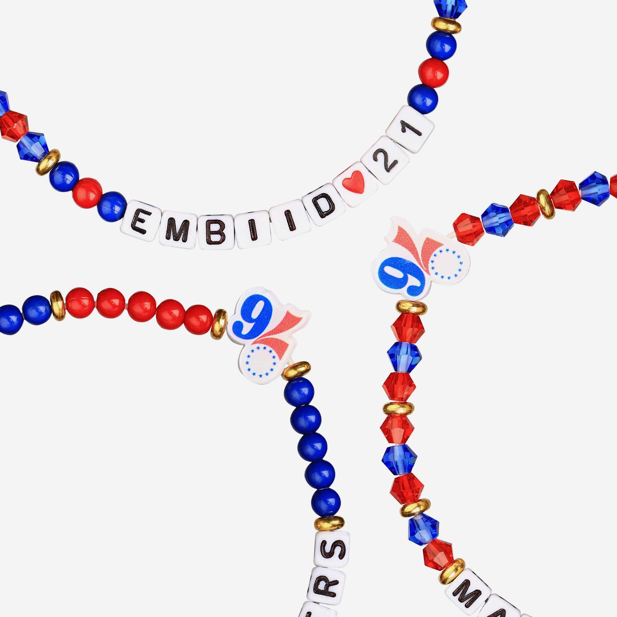 Accessorize and maximize your fandom while impressing your fellow fans with this Joel Embiid Philadelphia 76ers 3 Pack Player Friendship Bracelet. These matching friendship bracelets have an all-over team-colored design and team logo displays, which makes them the perfect way to show your support for the Philadelphia 76ers and get in on the latest accessory craze.