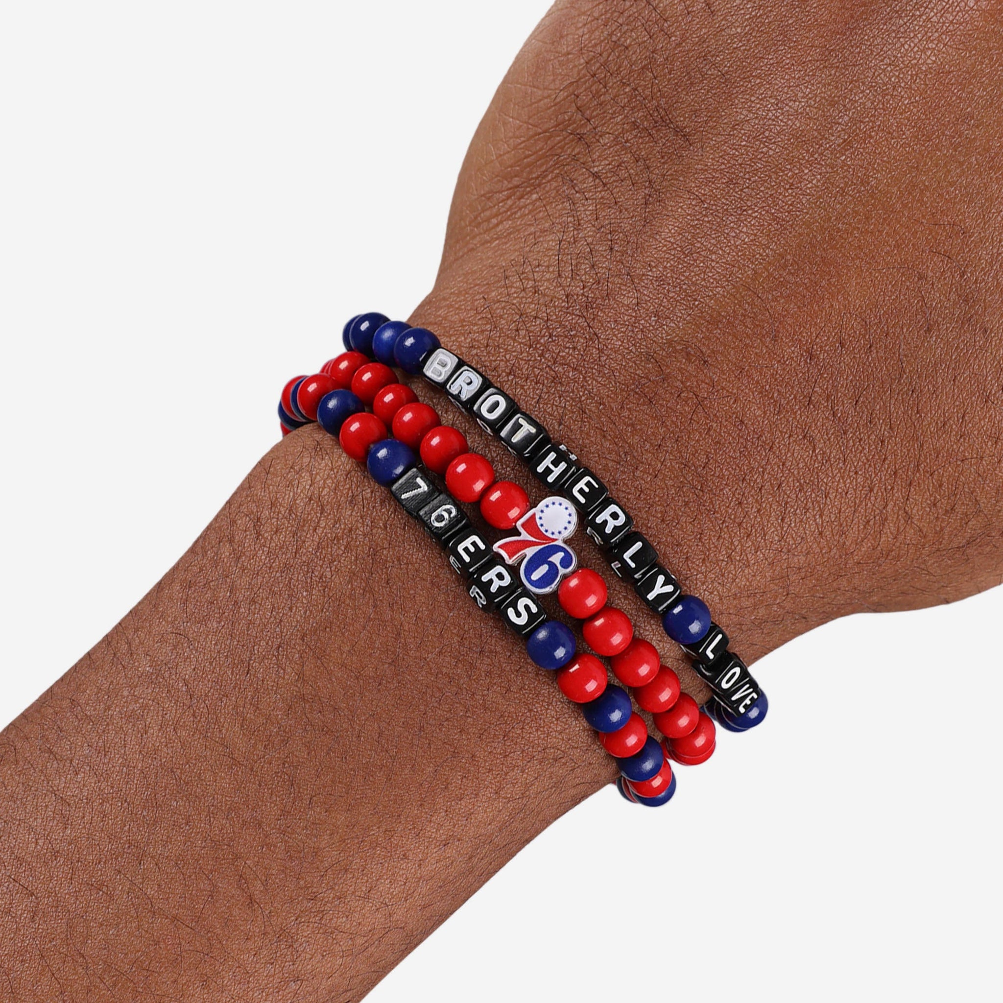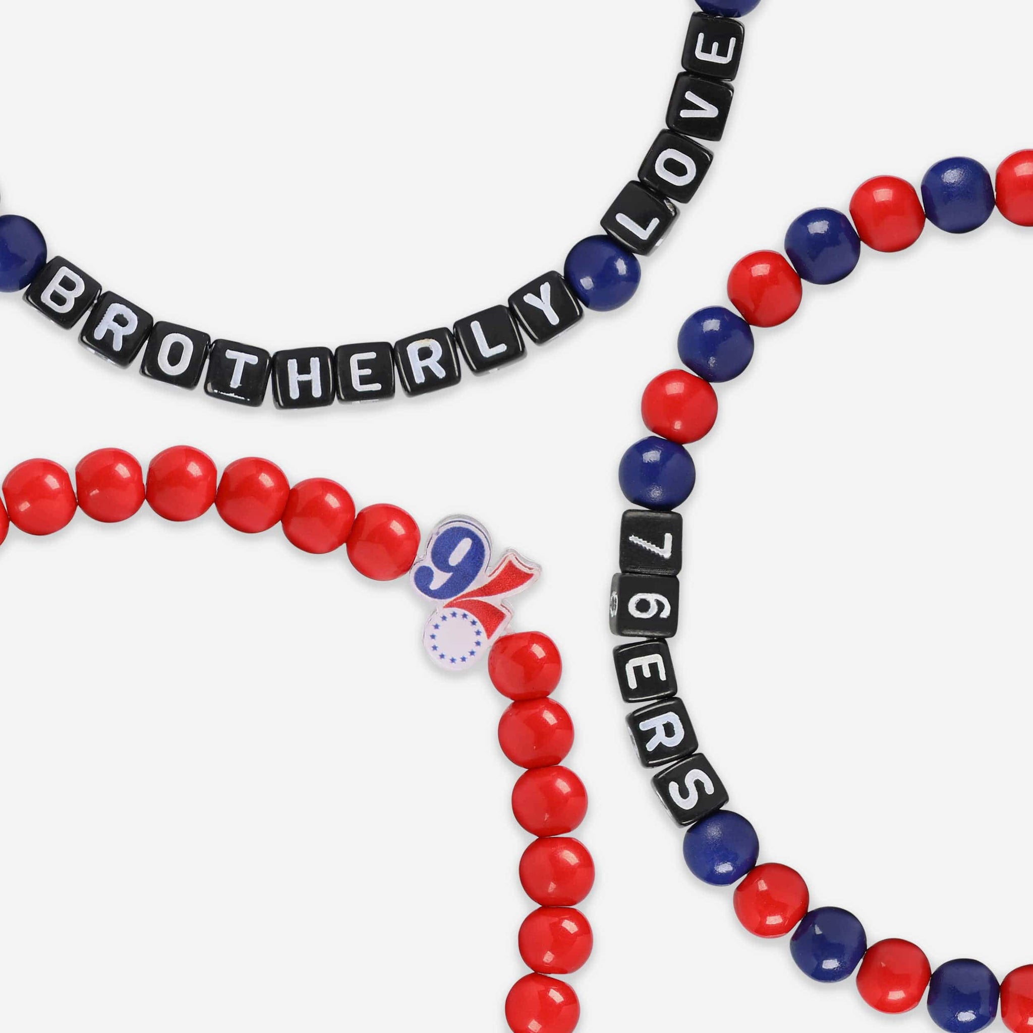 A whole new way to rep the team in style is here. Step up your fan fashion sense with this Philadelphia 76ers 3 Pack Beaded Friendship Bracelet. These matching friendship bracelets have an all-over team-colored design and team logo displays, which makes them the perfect way to show your support for the Philadelphia 76ers on gamedays and every day in between.
