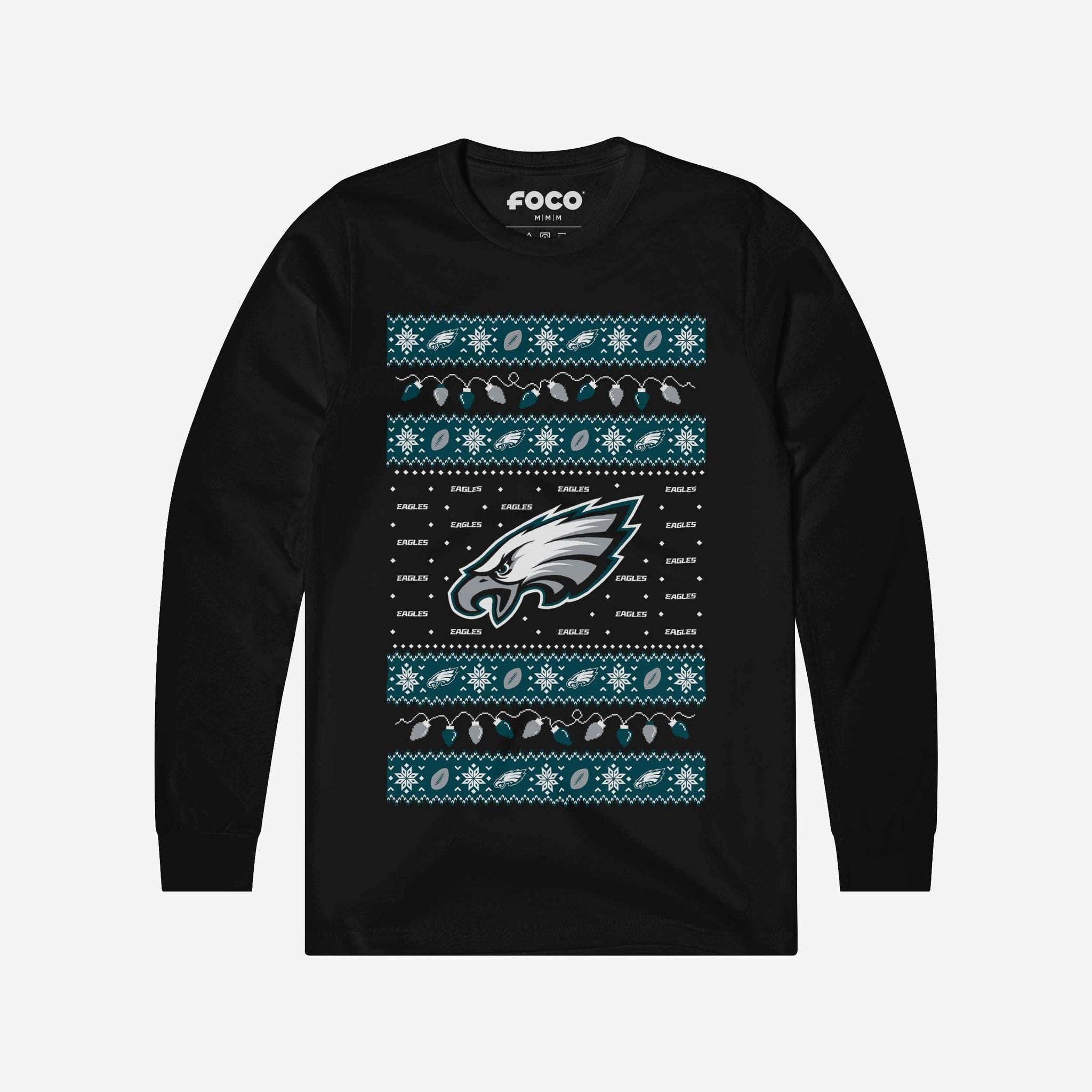 Santa's making a list, and he’s checking it twice! Prove that you’re the nicest fan around with the Philadelphia Eagles Holiday Lights Sweater Long Sleeve T-Shirt.