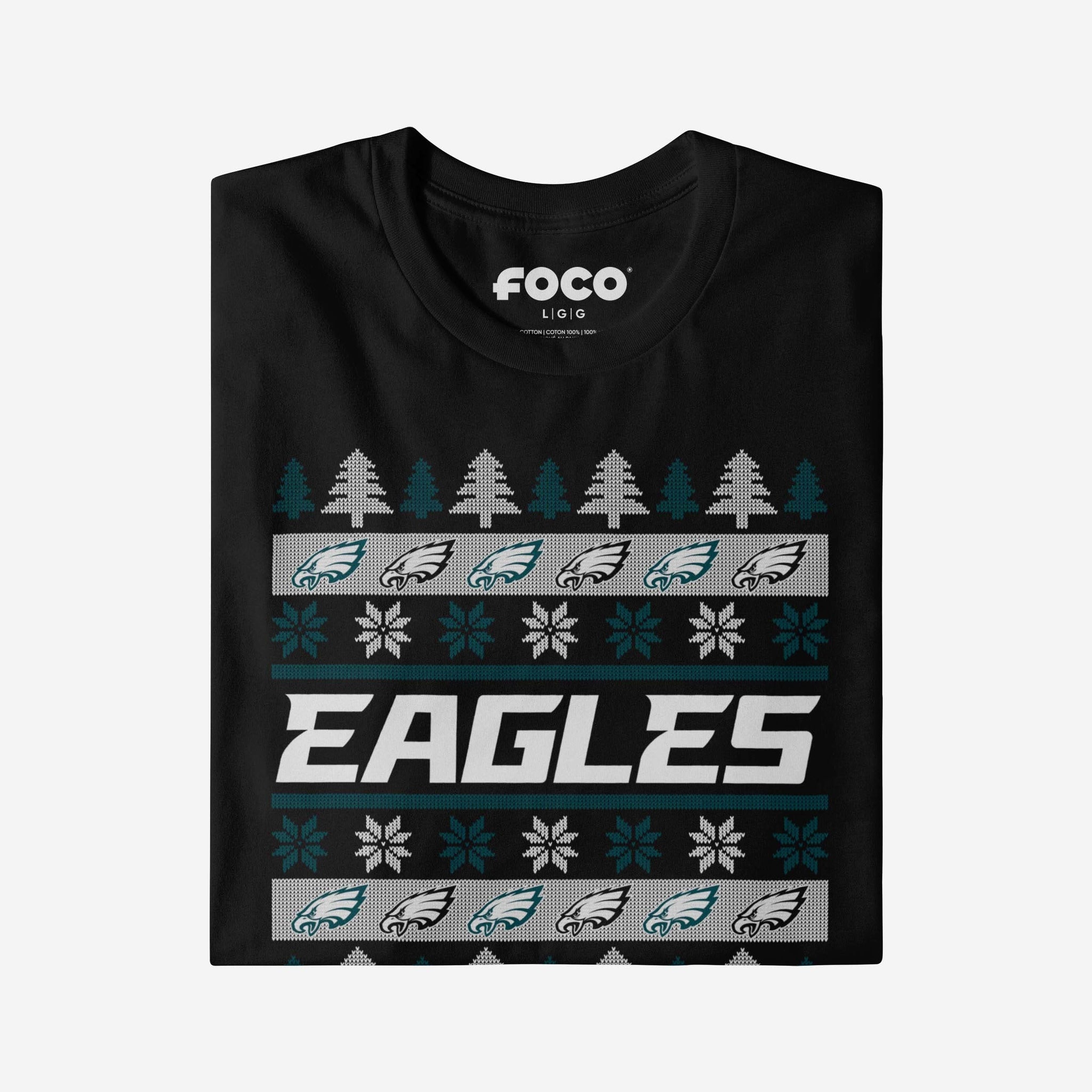 - Festive, team-colored design: This traditional t-shirt shows off the official Philadelphia Eagles colors in an all-over team-colored design with winter tree and snowflake accents, so you can show your team spirit with pride.
