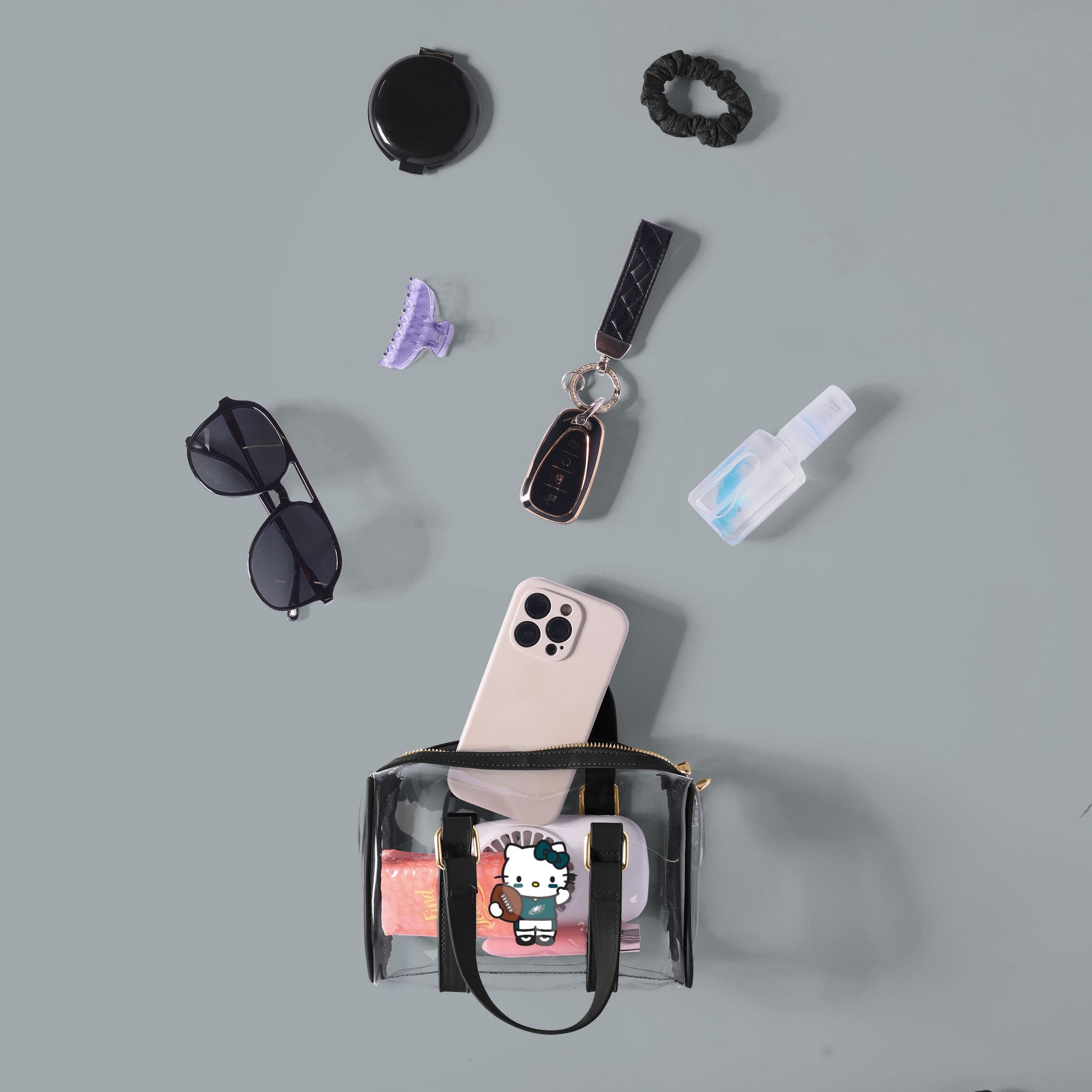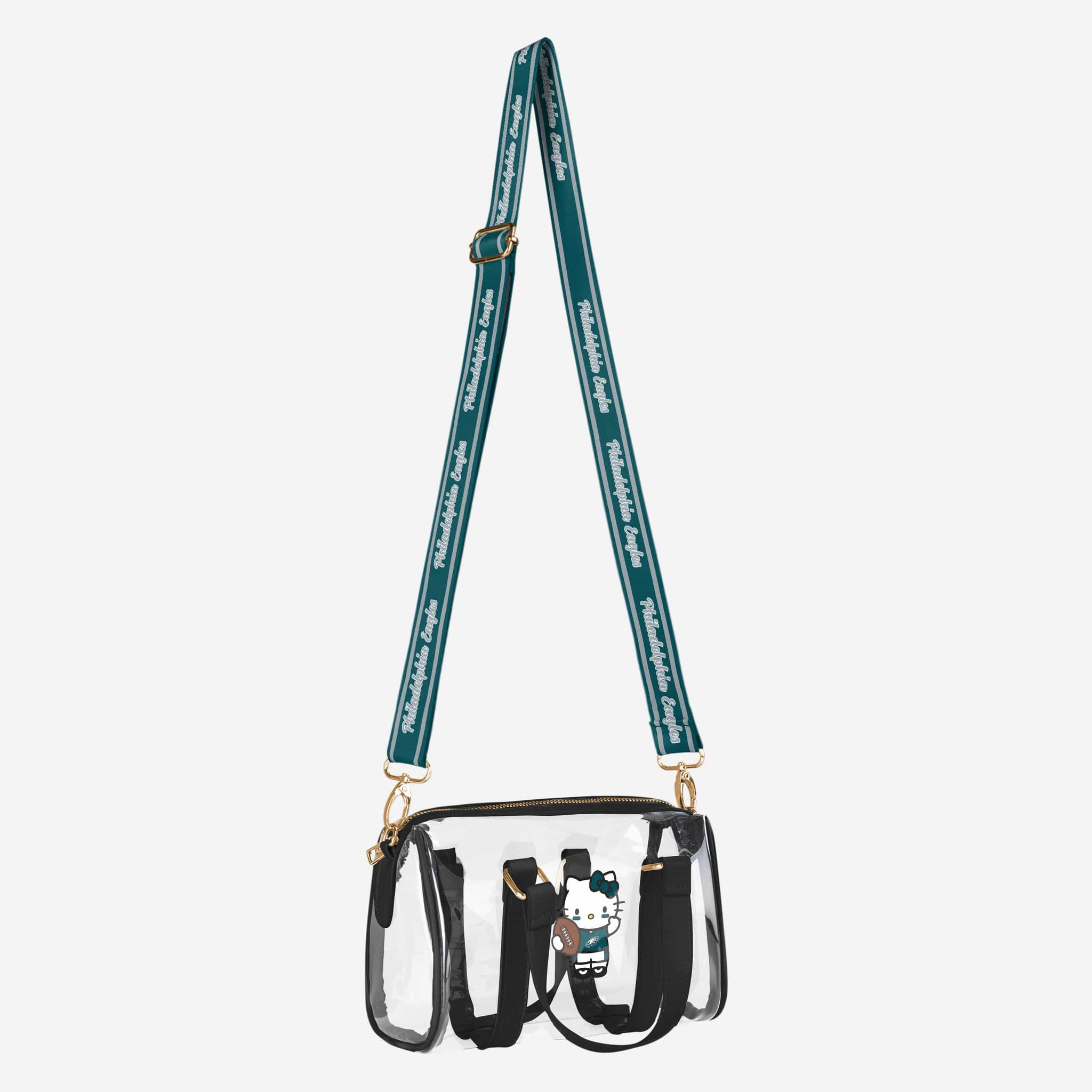 Show off your team spirit with a cute and stylish twist! This Philadelphia Eagles Hello Kitty® Clear Barrel Bag is the perfect game day companion, combining iconic character charm with a clear, trend-forward design.