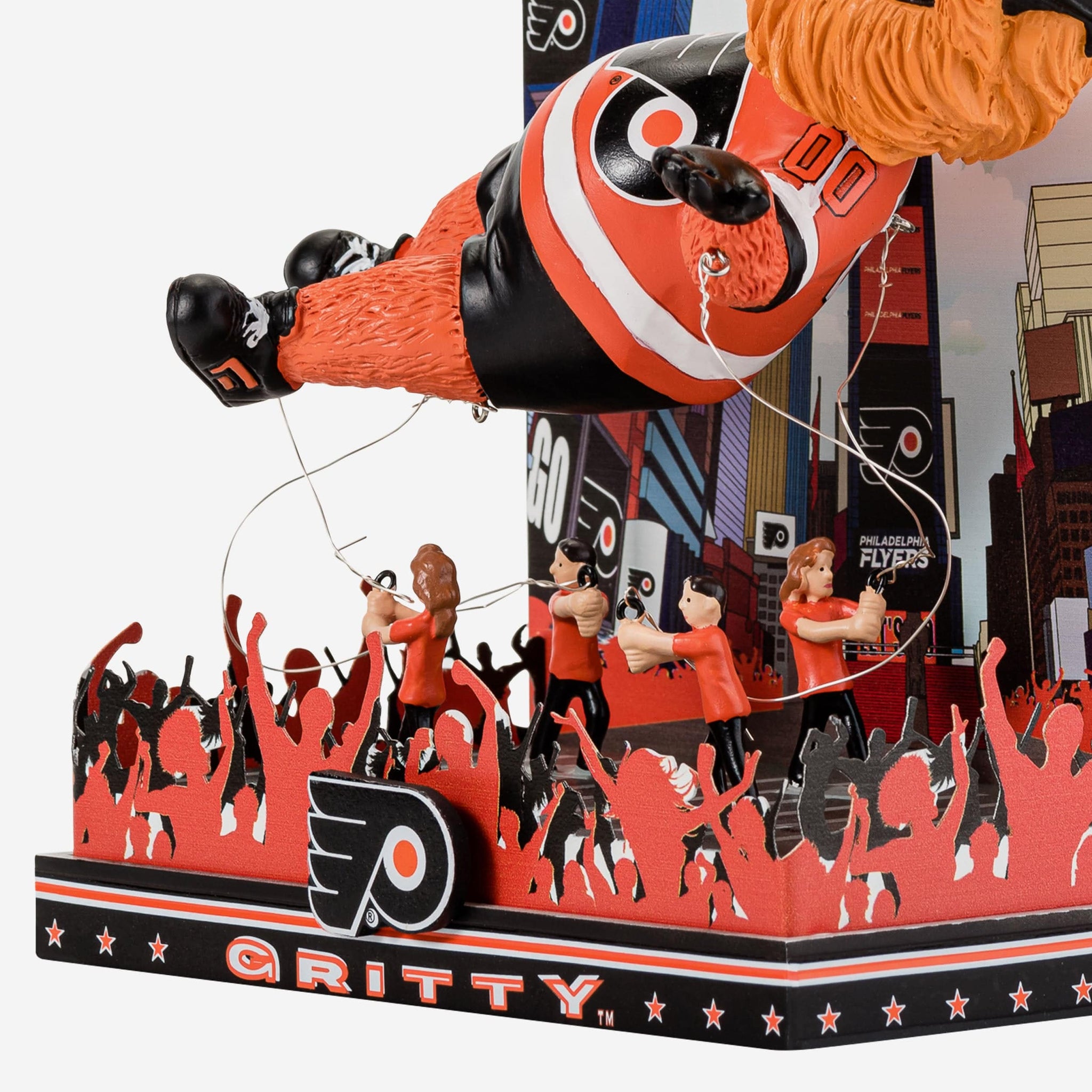 Gobble gobble? Bobble bobble. No need to plan a trip - The parade route is making a stop in your fancave. Feast on some fandom and be the grand marshal of your celebration with this Gritty Philadelphia Flyers Parade Float Mascot Bobblehead!