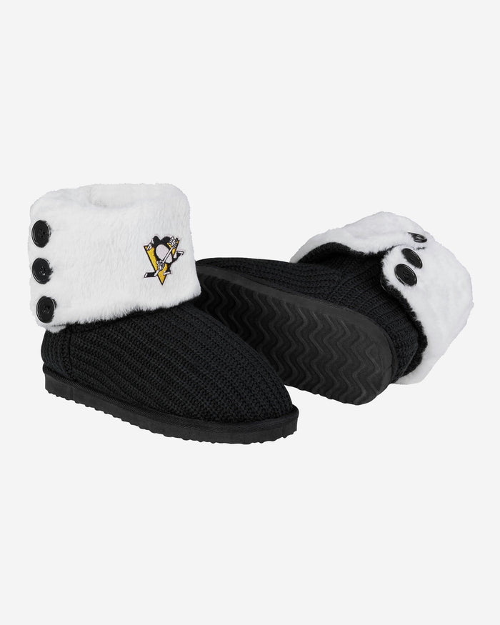 These Pittsburgh Penguins Knit High End Button Boot Slippers are perfect for rocking your team spirit from head to toe, or keeping yourself warm and comfortable while you sneak downstairs for that secret midnight snack. No judgment here.