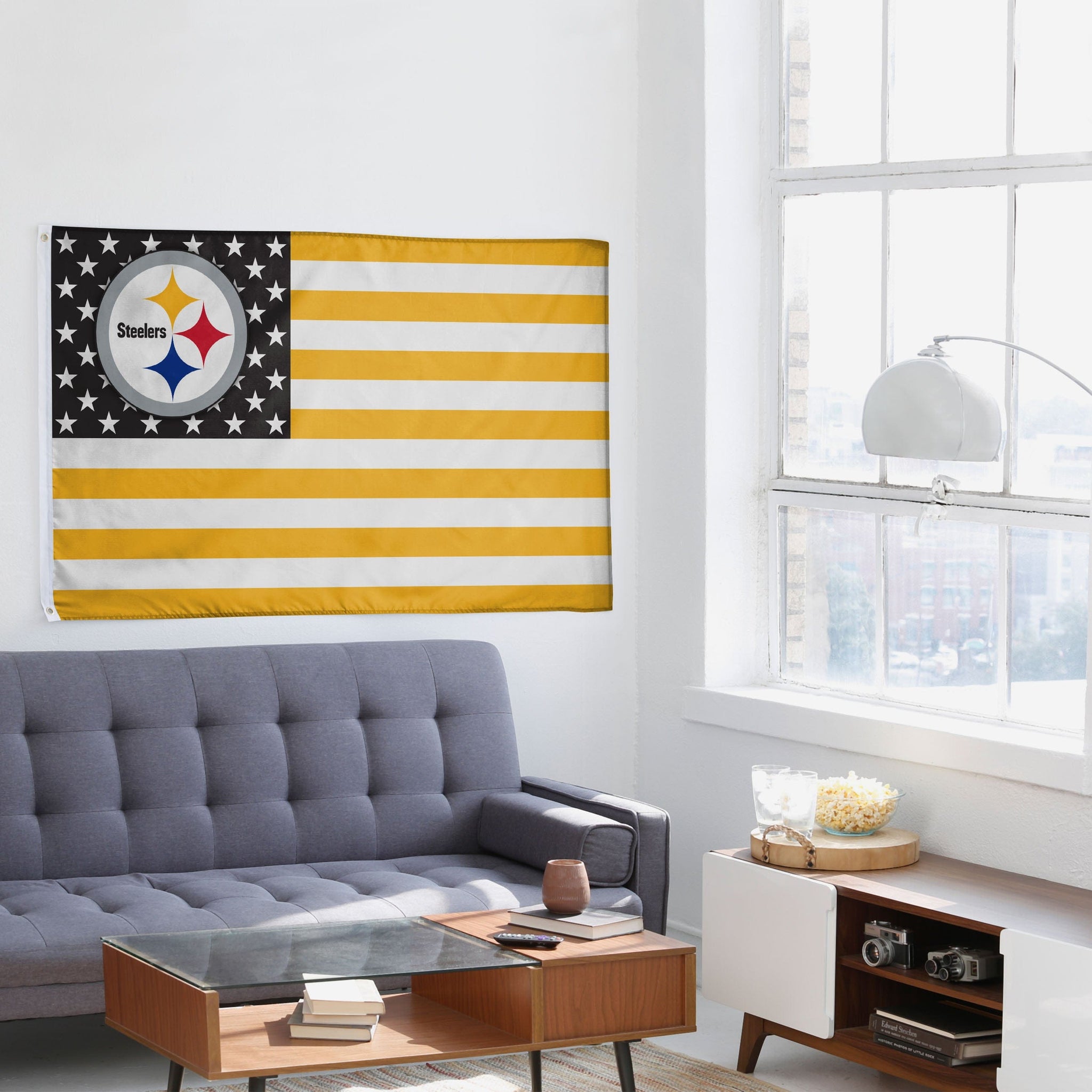 When you add this Pittsburgh Steelers American Stars Horizontal Flag to your fancave, you and your fellow fans will be ready to celebrate some stars, stripes, and team spirit.