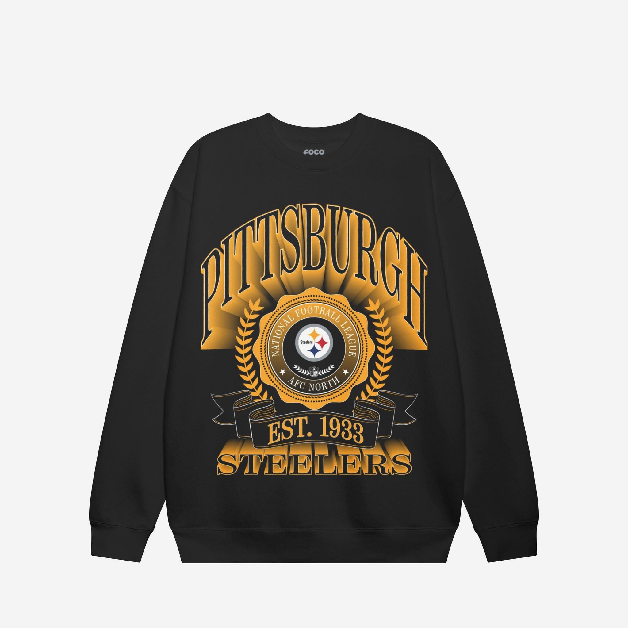 Your team. Your banner. Your moment. Whether you’re chilling at the tailgate, in the stands at the game, or watching from the couch, the Pittsburgh Steelers Banner Crest Crew Neck Sweatshirt will keep you warm and your fan fit fresh.