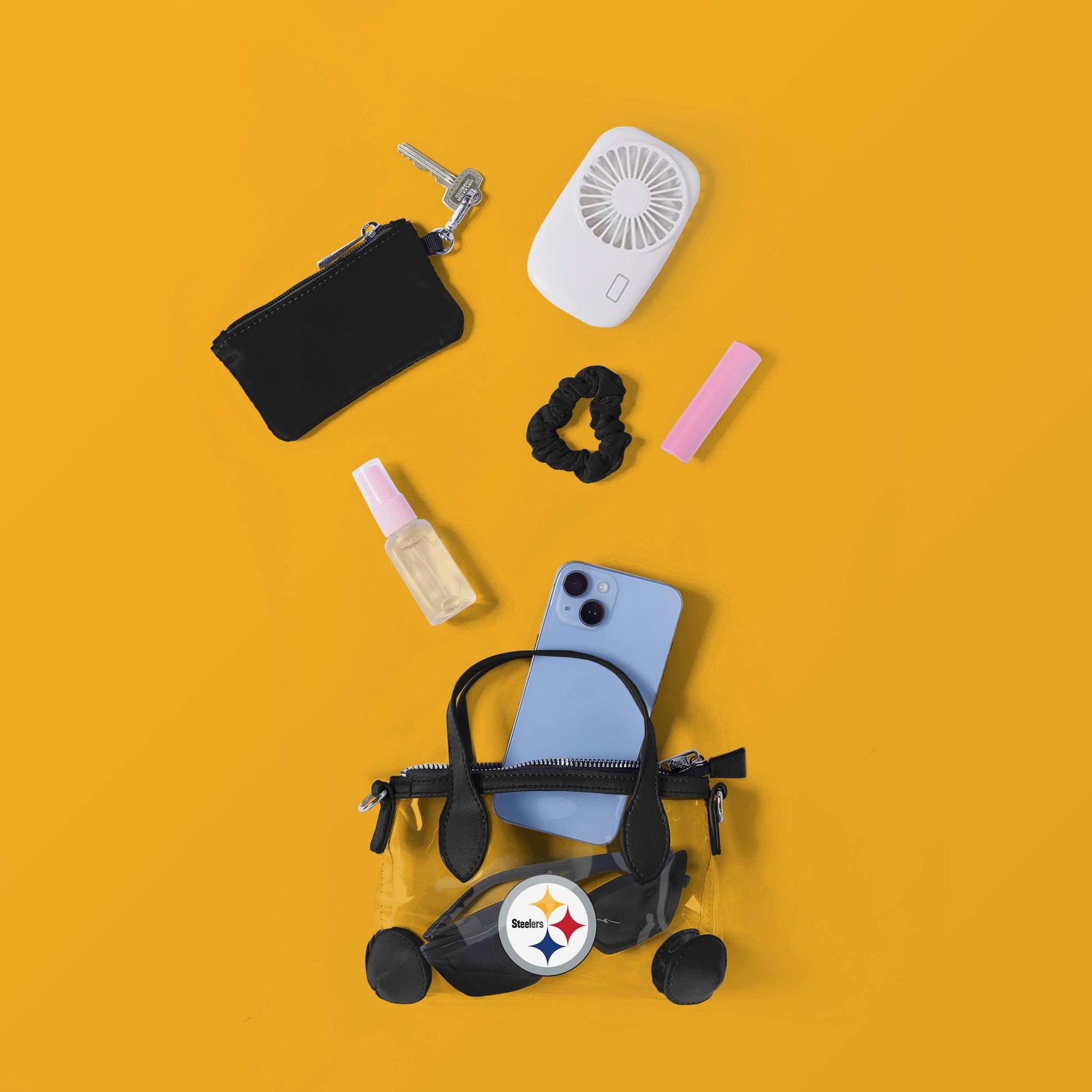 It's clear to see. Whether you've got it slung across your shoulder or held in your hands, this Pittsburgh Steelers Big Logo Clear Crossbody Mini Purse is the perfect accessory for displaying your fandom and keeping your stuff secure at the game.